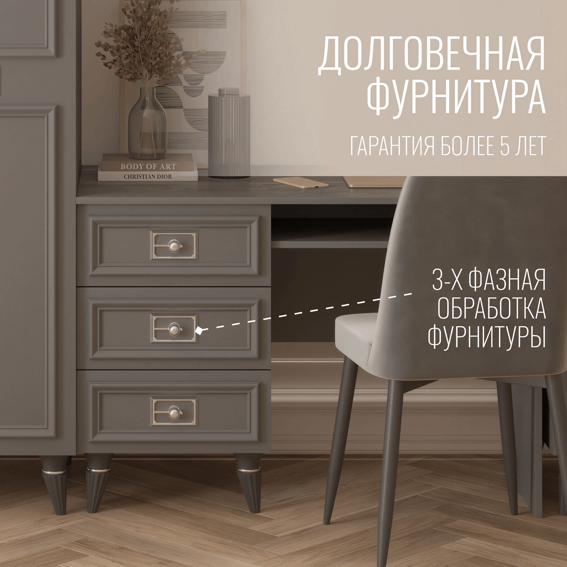 Изысканная Элегантность: Формы, узоры и детали этого стола создают атмосферу изысканности и роскоши. Он не просто рабочее место, это настоящее визуальное украшение вашей спальни.