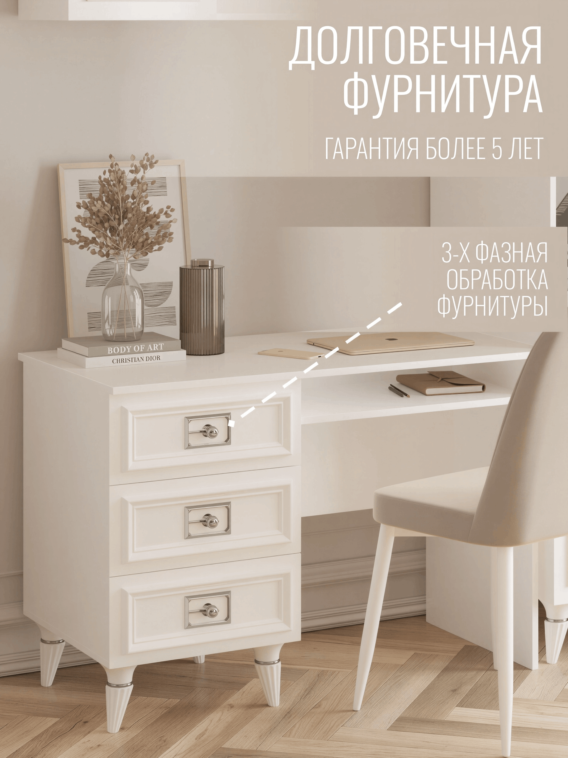 Изысканная Элегантность: Формы, узоры и детали этого стола создают атмосферу изысканности и роскоши. Он не просто рабочее место, это настоящее визуальное украшение вашей спальни.