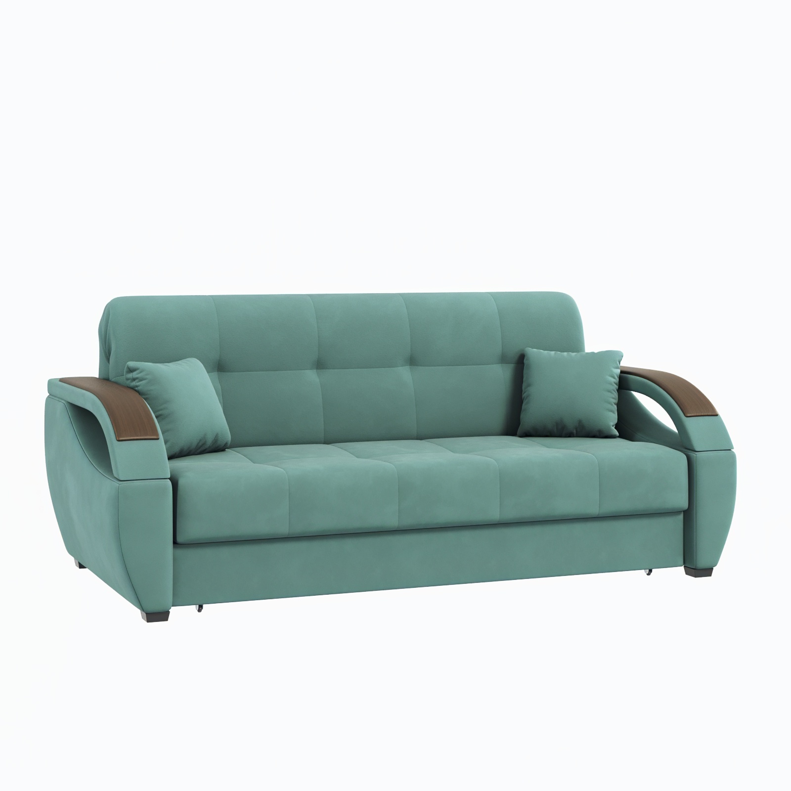 Обивка дивана выполнена из качественного искусственного велюра, который приятен на ощупь и легко чистится.