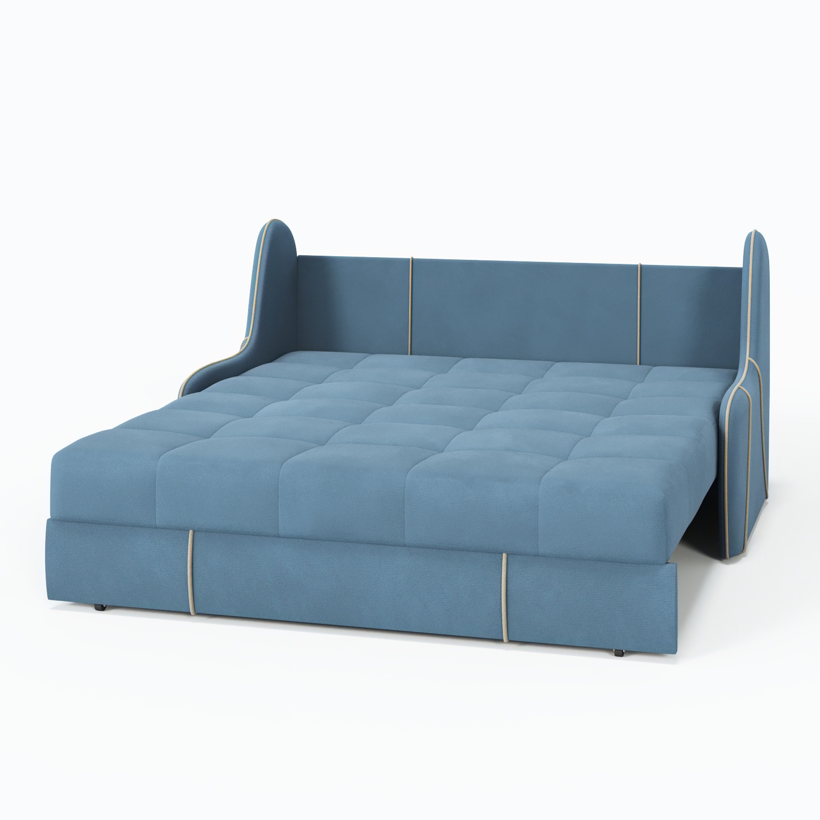 Продуманный механизм «аккордеон» обеспечивает быстрое превращение в удобное спальное место размером 120×200 см, а прочный каркас из натурального дерева и металла гарантирует долгий срок службы.