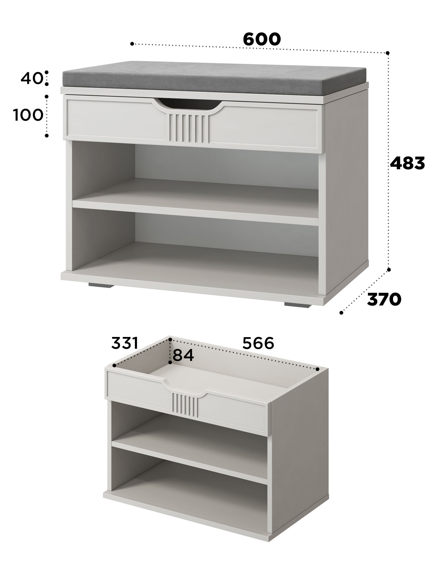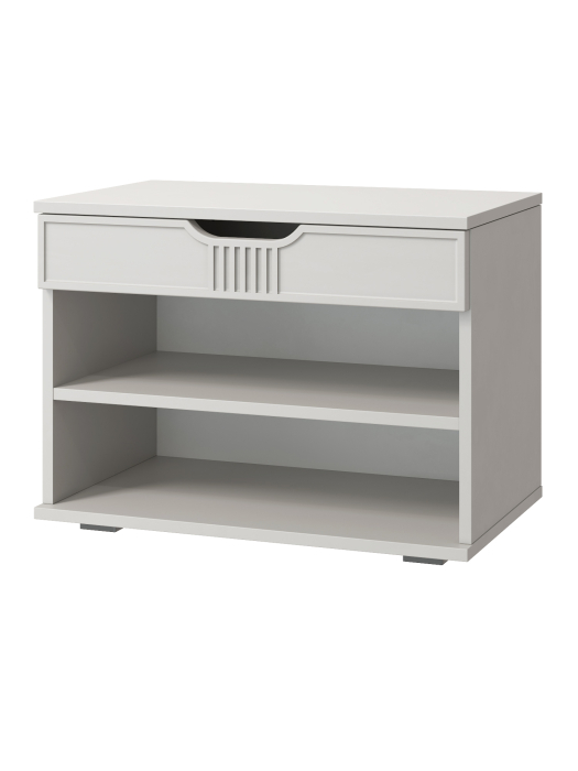 Тумба для обуви Эмилия ЭЛ-44 – компактная модель для комфортного переобувания в прихожую. Лаконичное изделие оборудовано двумя полками для обуви и сиденьем, под которым находится удобный ящик для хранения чистящих средств, щеток или зонта. Высота опоры 20 мм.