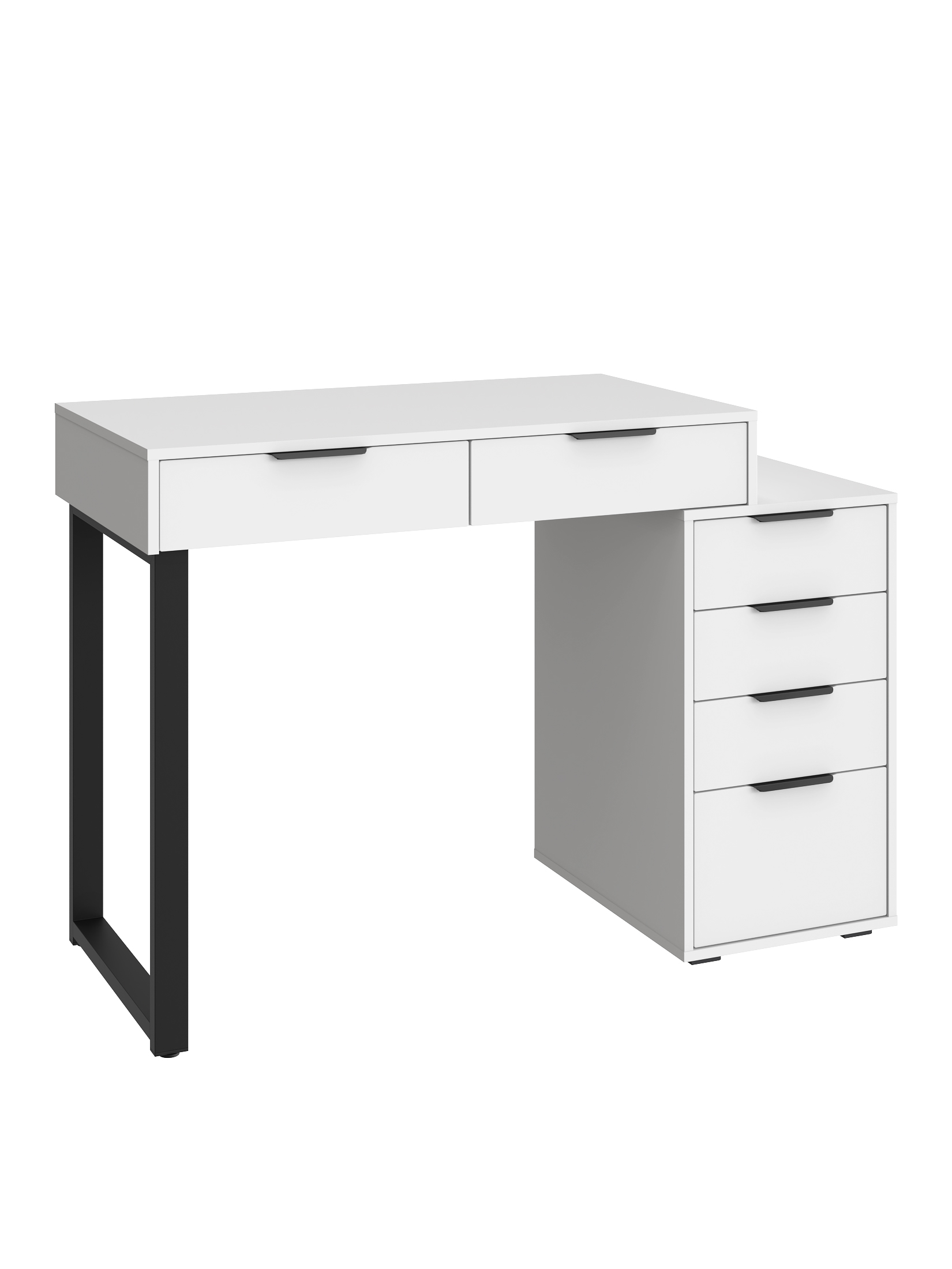 Универсальность: подходит для использования в качестве письменного, компьютерного или маникюрного стола. Рекомендуется высокий стул. Фурнитура: телескопические направляющие полного выдвижения без доводчиков, металлические ручки и опора.