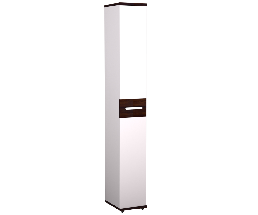 Высокая и узкая выдвижная обувница - уникальное предложение на рынке мебели. Узкая обувница поможет аккуратно расставить до 18 пар обуви, а также средства по уходу за ней. Шкаф выдвигается без усилий, благодаря выкатным роликам и шариковым направляющим полного выдвижения. Пространство внутри шкафа вентилируется с помощью небольших отверстий на крышке и дне выдвижной части шкафа. Предусмотрена право- и левосторонняя сборка модуля.