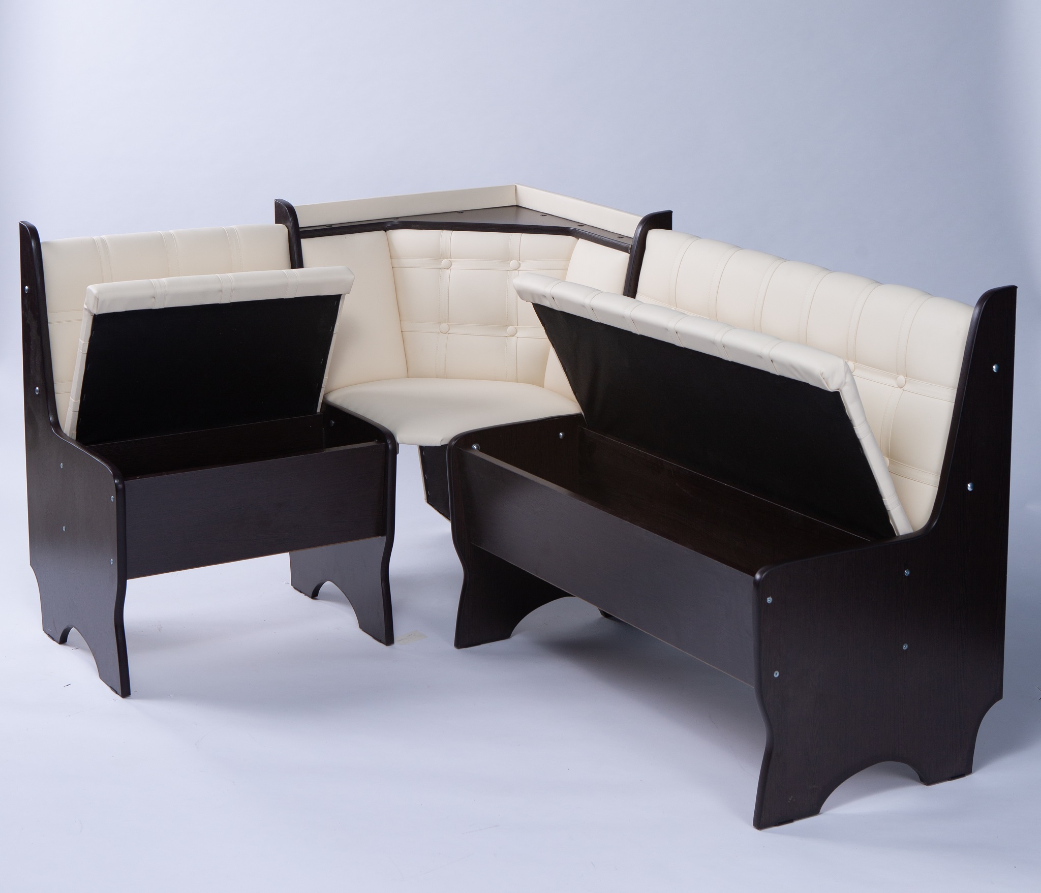 Кухонный уголок состоит из:Дивана углового,Стол прямоугольный НЕРАСКЛАДНОЙ Г*Ш*В 60*90*73 см.Изготовлен из ЛДСП.Обивка микровелюр ,наполнение поролон.Под сидениями дивана есть ящики для хранения.СБОРКА УНИВЕРСАЛЬНАЯ,КАК НА ЛЕВУЮ,ТАК И НА ПРАВУЮ СТОРОНУ!!!