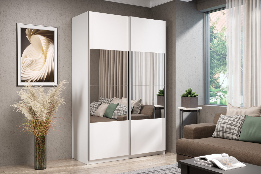Отзывы о Столплит Шкаф-купе Smart 1624 2х дверный (фасады ЛДСП/зеркало) профиль серебро Белый