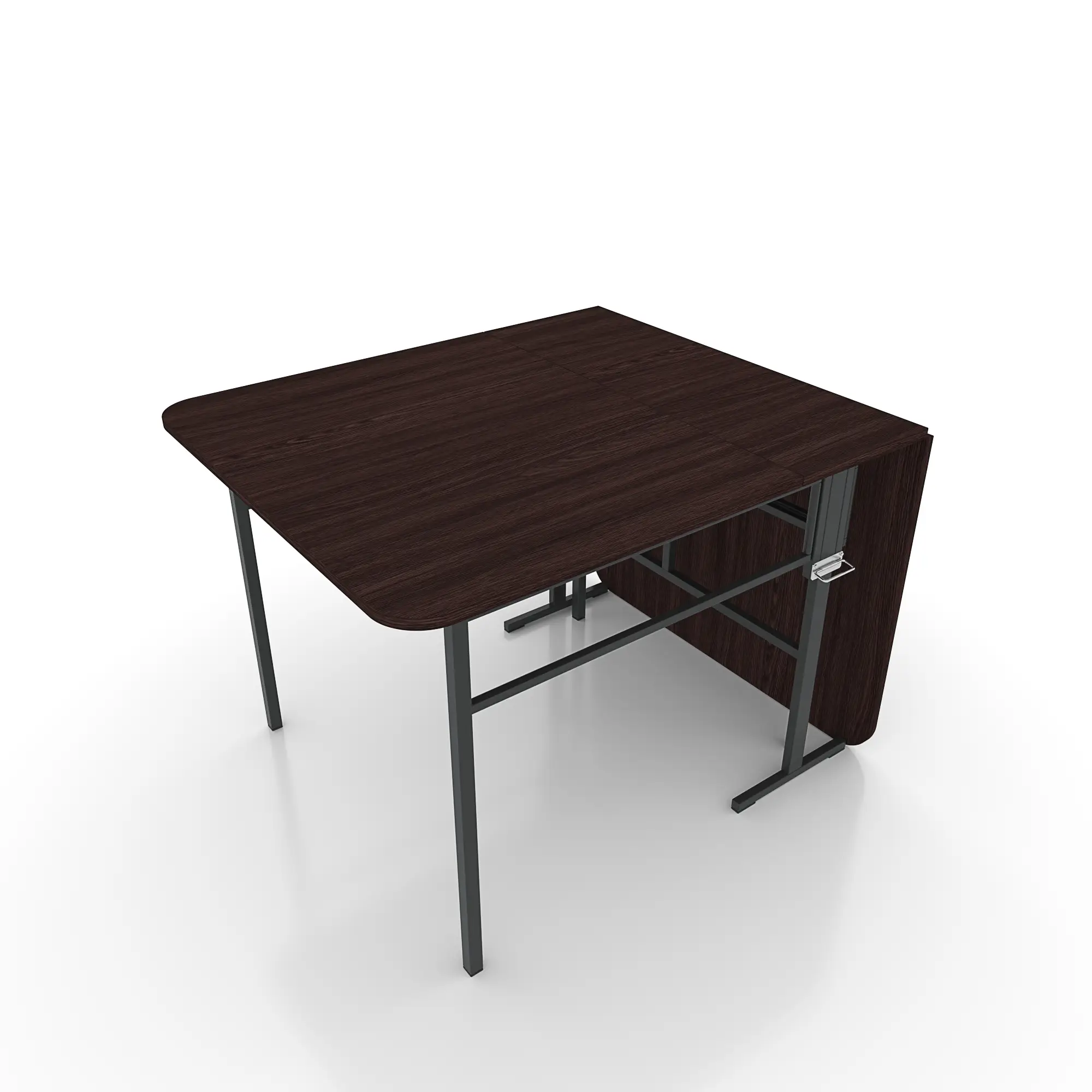 Каркас стола выполнен из металлических профилей, покрытых полимерной эмалью. Это обеспечивает долговечность и устойчивость конструкции. Столешница изготовлена из ЛДСП толщиной 16 мм, торцы столешницы защищены 1 мм кромкой из ПВХ.