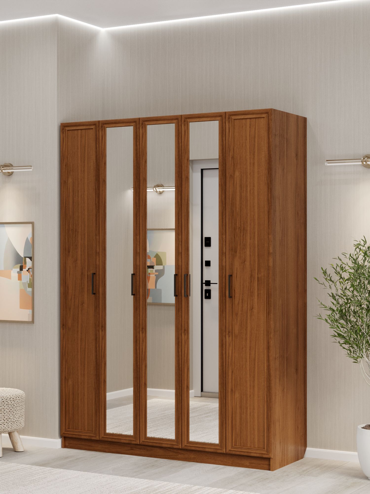 Шкаф распашной ШК‑5/5 — вместительное и функциональное решение для организации хранения в спальне, гостиной или прихожей. Пятидверный шкаф с двумя штангами и обширным набором полок позволяет максимально эффективно использовать пространство. Фасад из МДФ и корпус из ЛДСП гарантируют прочность конструкции, долговечность и эстетичный внешний вид. Нейтральный дизайн шкафа легко вписывается в современные интерьеры разных стилевых направлений.