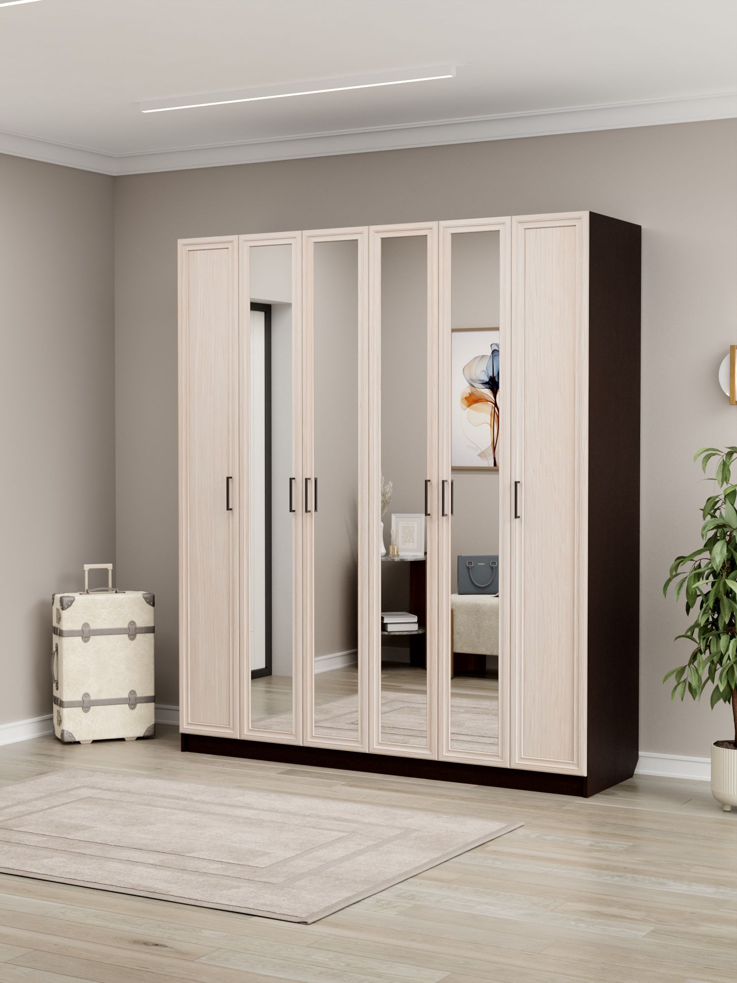 Шкаф распашной InHouse ШК‑6/5 — масштабное решение для организации хранения в спальне, прихожей или гардеробной. Модель сочетает шестистворчатое отделение для одежды с обширным набором полок, обеспечивая максимально эффективное использование пространства. Сочетание МДФ на фасадах и ЛДСП в корпусе придаёт изделию эстетичность и надёжность, а лаконичный дизайн гармонично вписывается в современные интерьеры.