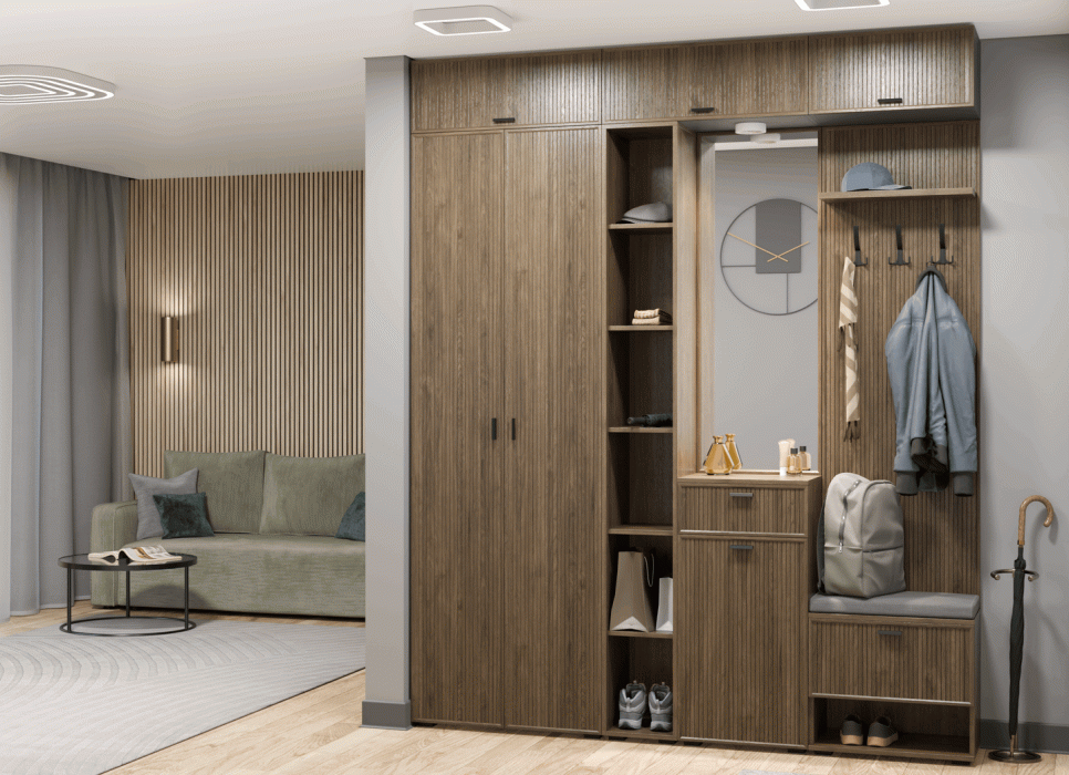 Отзывы о Столплит Модульная прихожая Стелла композиция 3 Гикори Темный ребристый