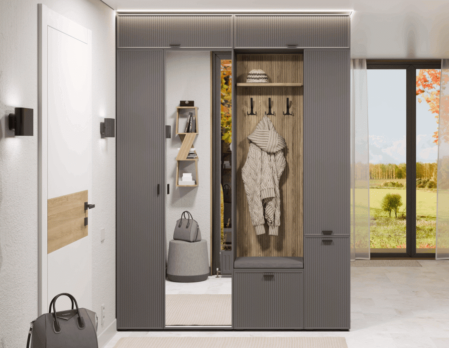 Отзывы о Столплит Модульная прихожая Стелла композиция 7 Серый Оникс Ребристый/Гикори Светлый Ребристый