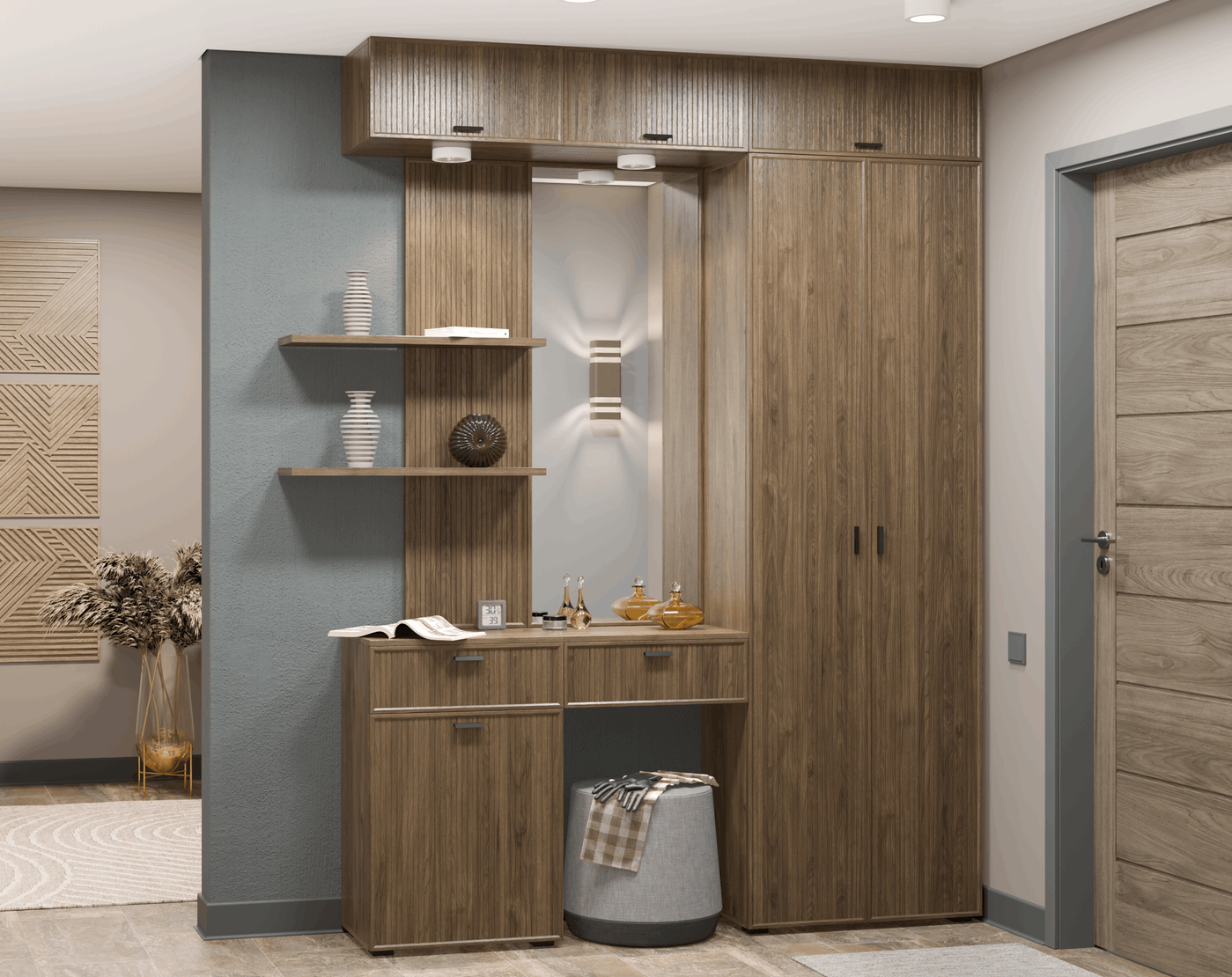 Отзывы о Столплит Модульная прихожая Стелла композиция 8 Гикори Темный ребристый