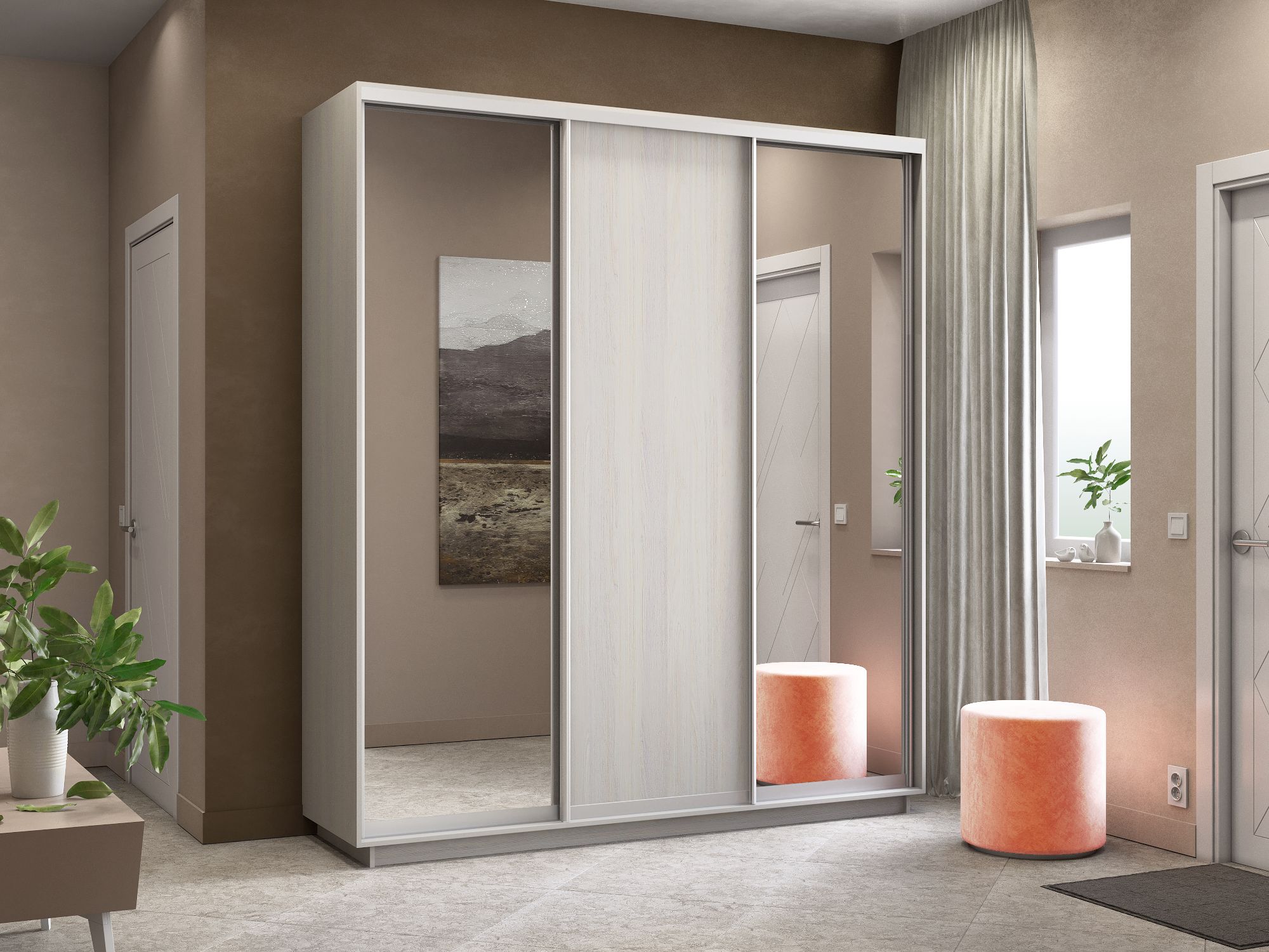 Отзывы о Столплит Шкаф-купе Экспресс Медиум (2 зеркала) трио 2200 x 2100 x 600 Ясень Анкор светлый