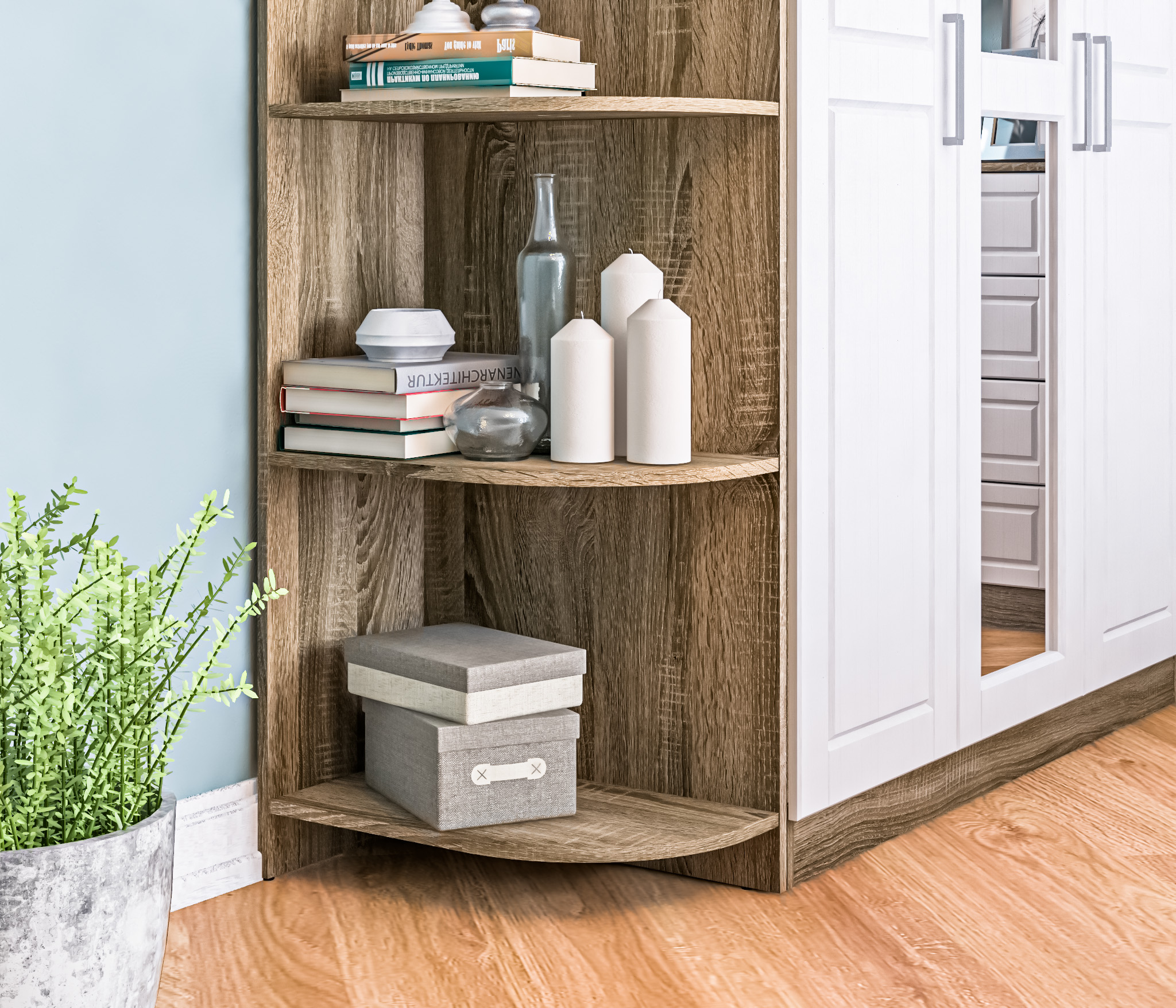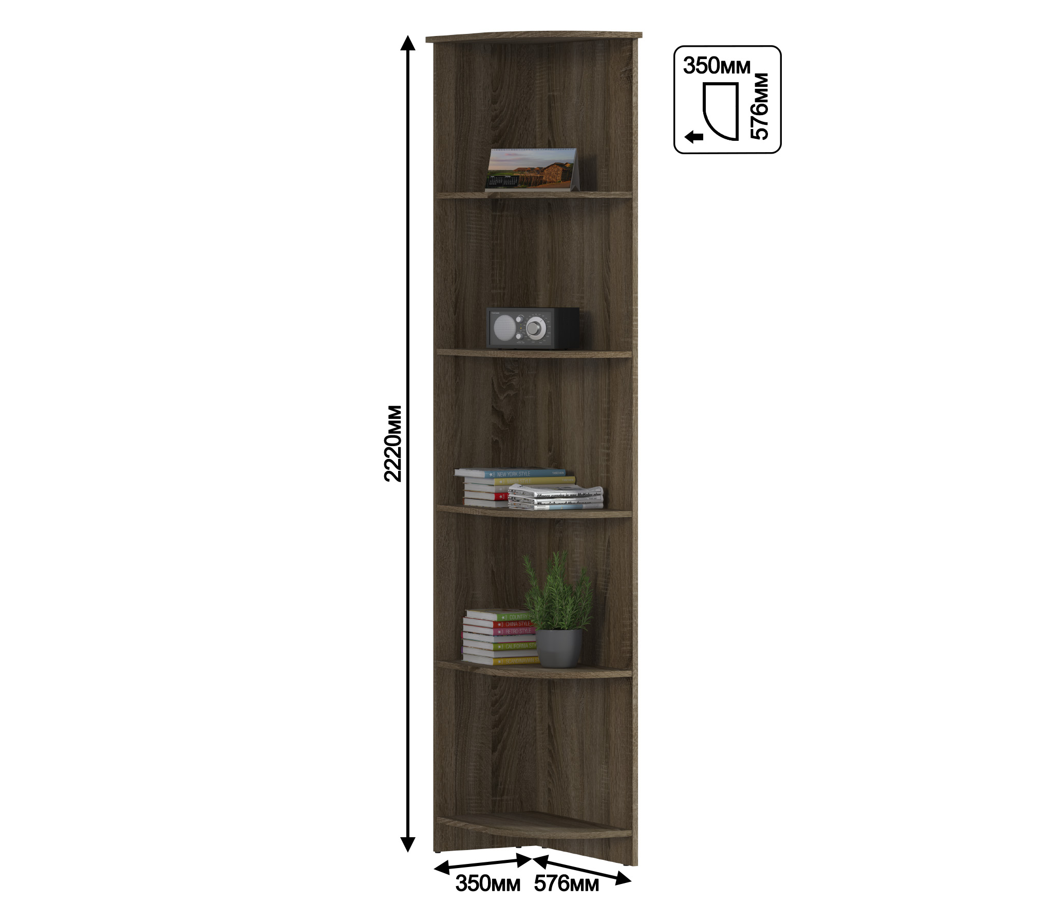 Торцевой стеллаж Илона СБ-2668 – это идеальное компактное место для хранения книг, журналов или демонстрации посуды, сувениров и других памятных предметов. Стеллаж универсален в использовании, идеально впишется в интерьер гостиной, детской, спальни и прихожей.