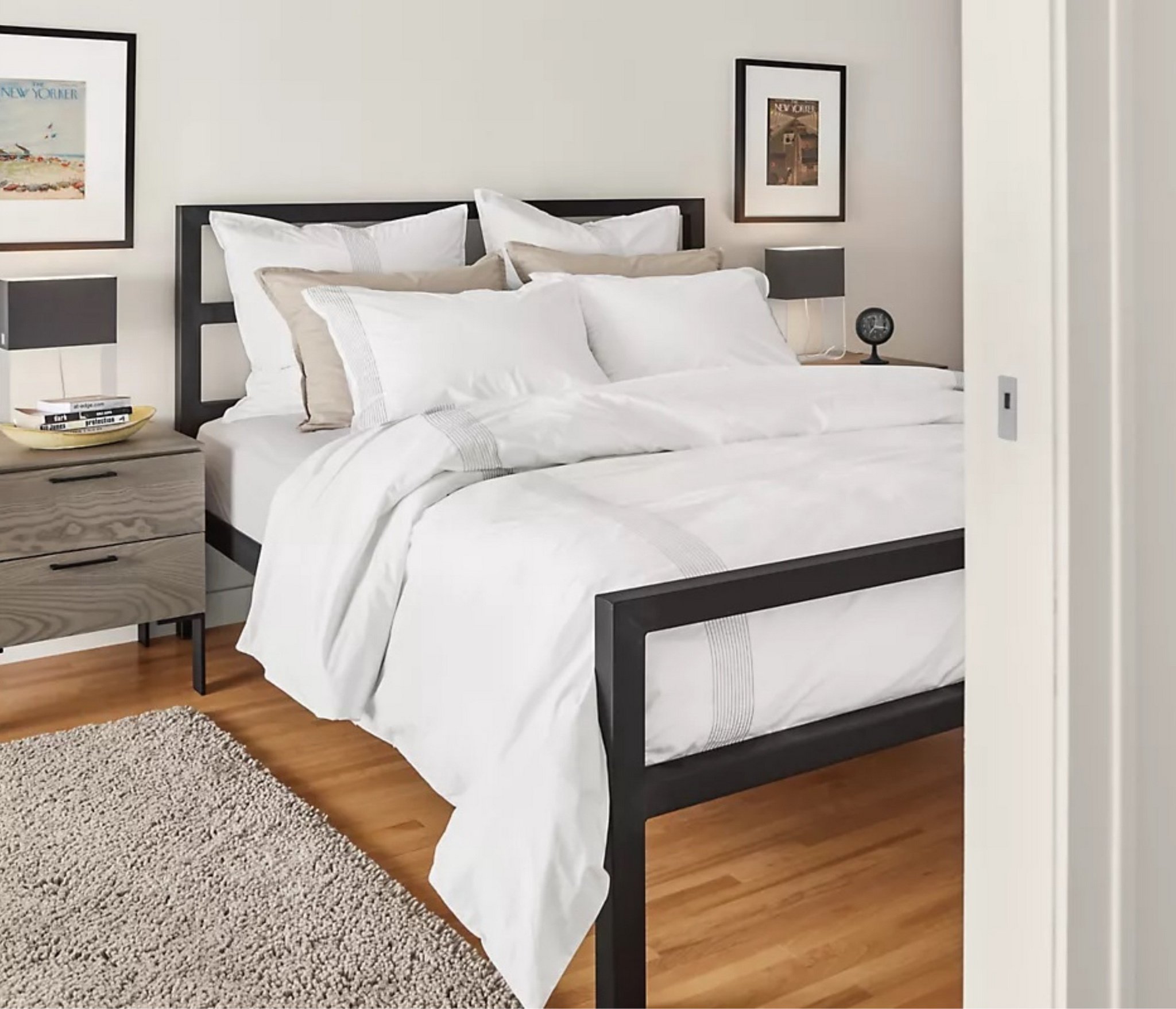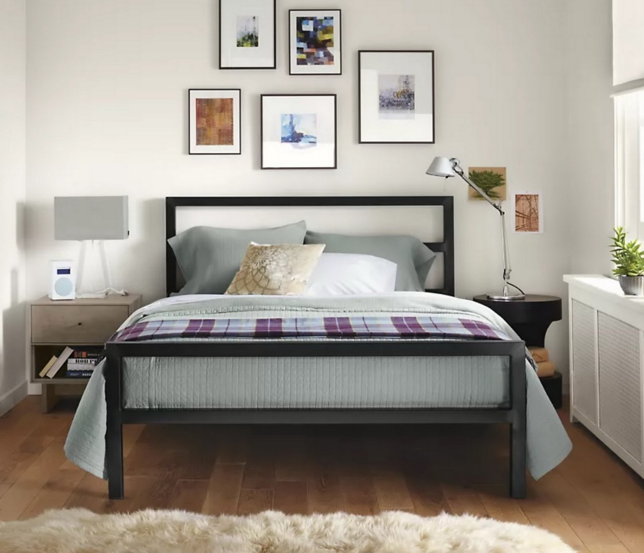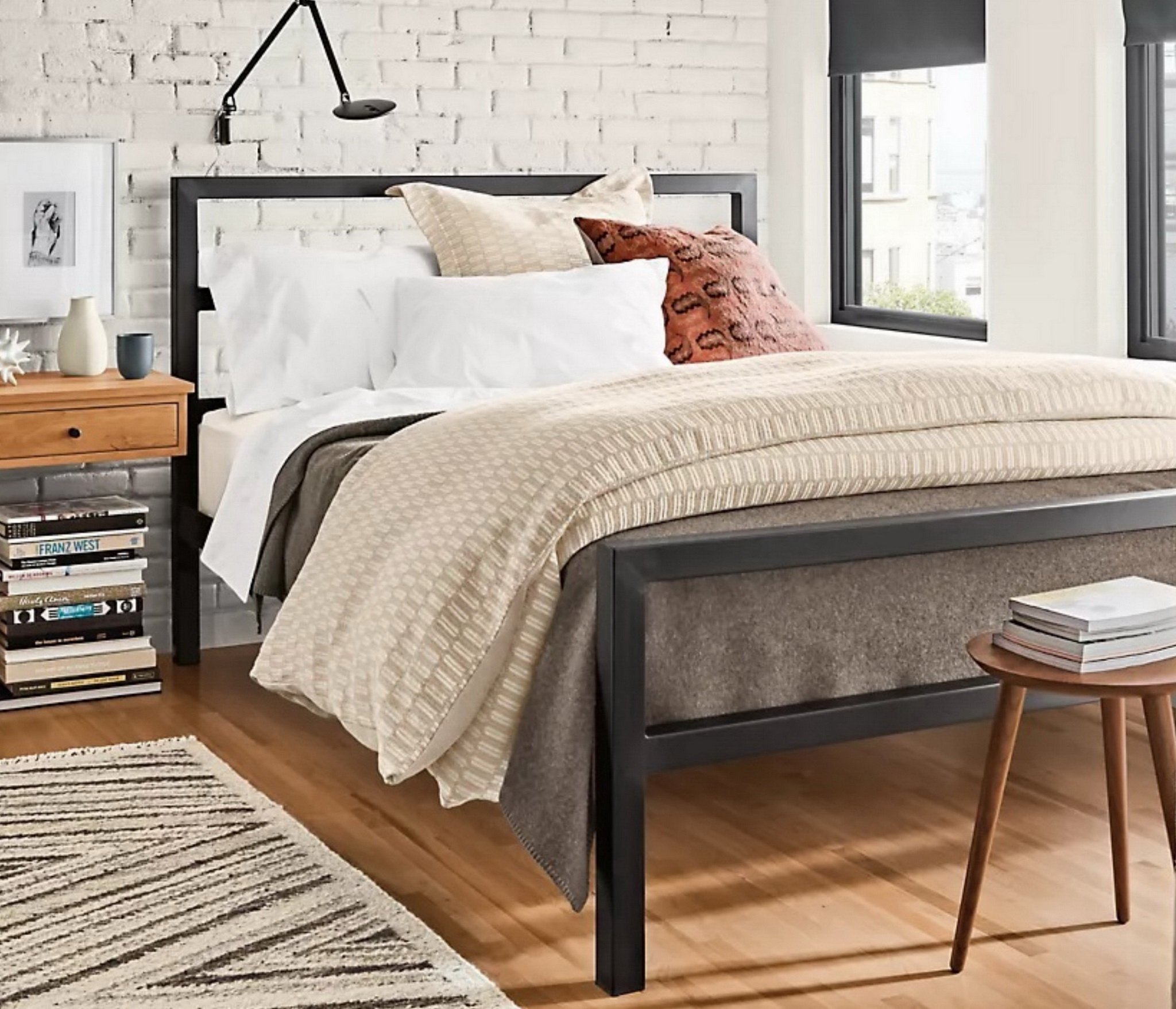 Благодаря отсутствию сплошного полотна изголовья и основания и его замены на горизонтальные перекладины модель выглядит изящно и совершенно не громоздко, благодаря чему может гармонично дополнить любой интерьер в современной стилистике.
