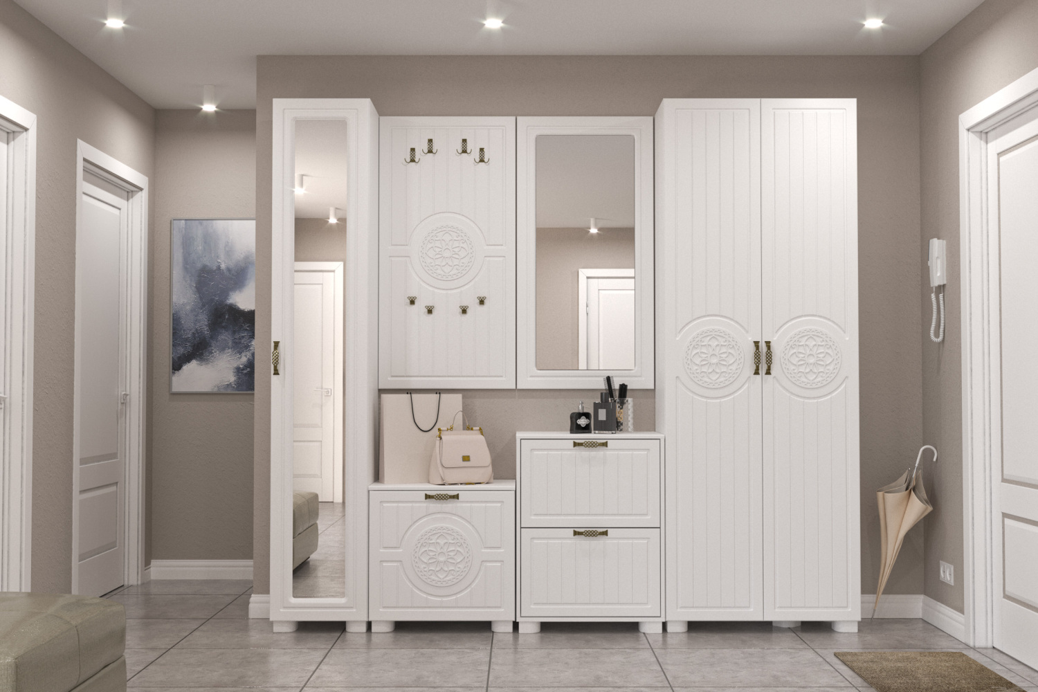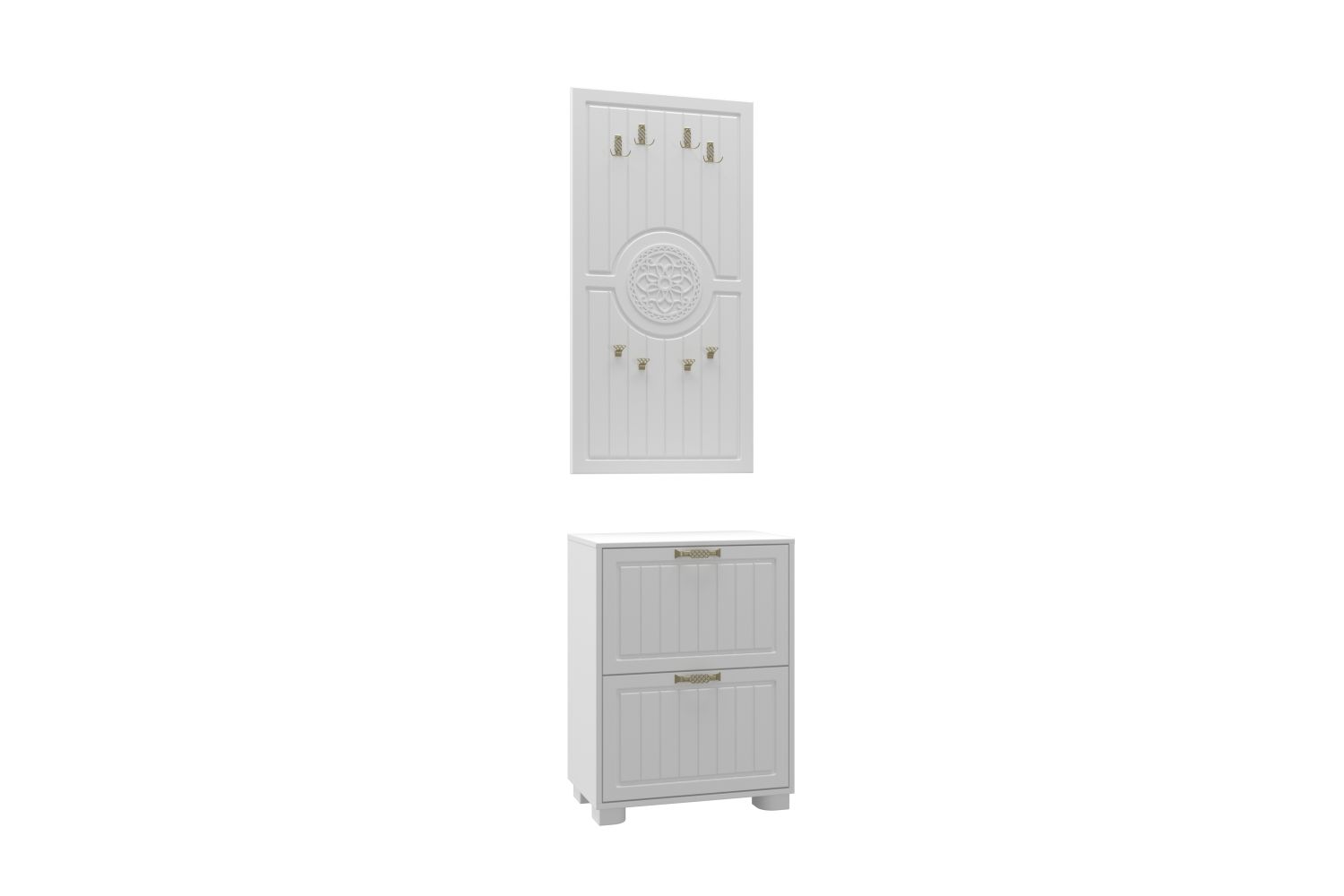 Цвет корпуса/фасада: белый структурный/белое дерево. Вешалка Монблан МБ-50 станет гармоничным дополнением уютного интерьера вашей прихожей. Восемь крючков предназначены для размещения верхней одежды, зонтов, сумок, шарфов и других аксессуаров.