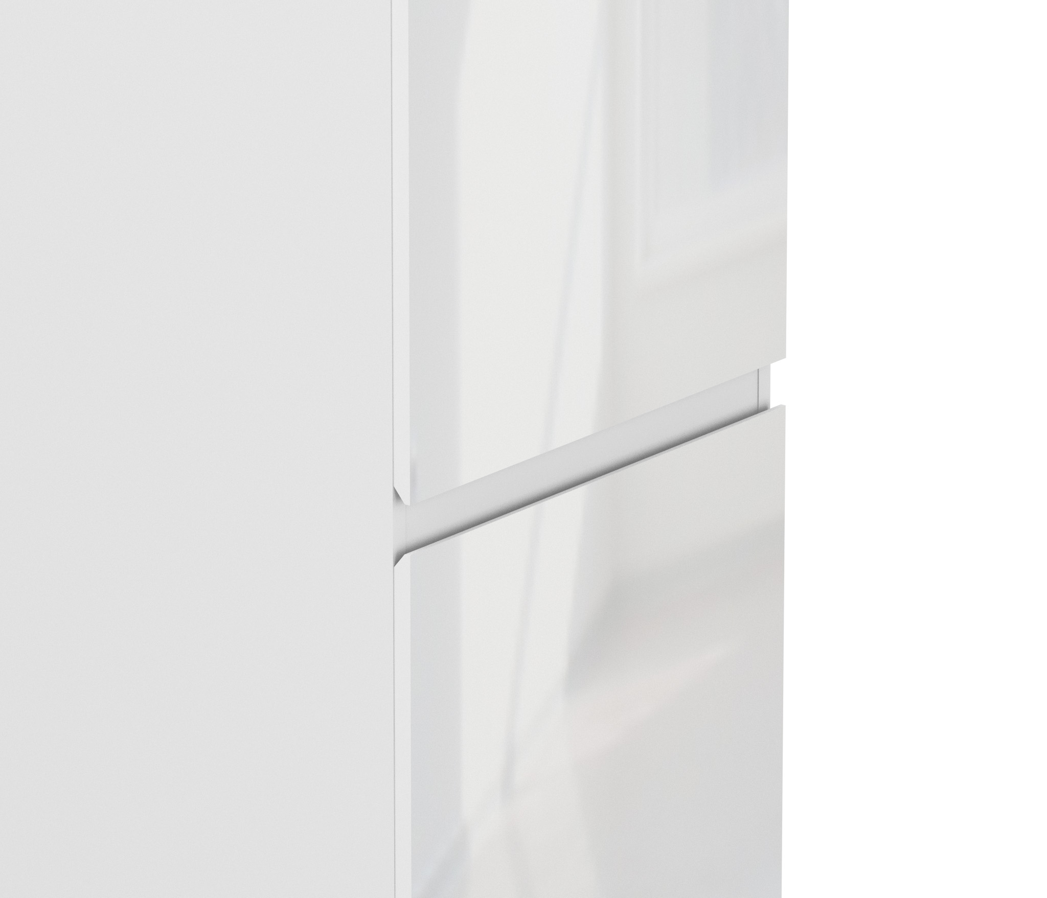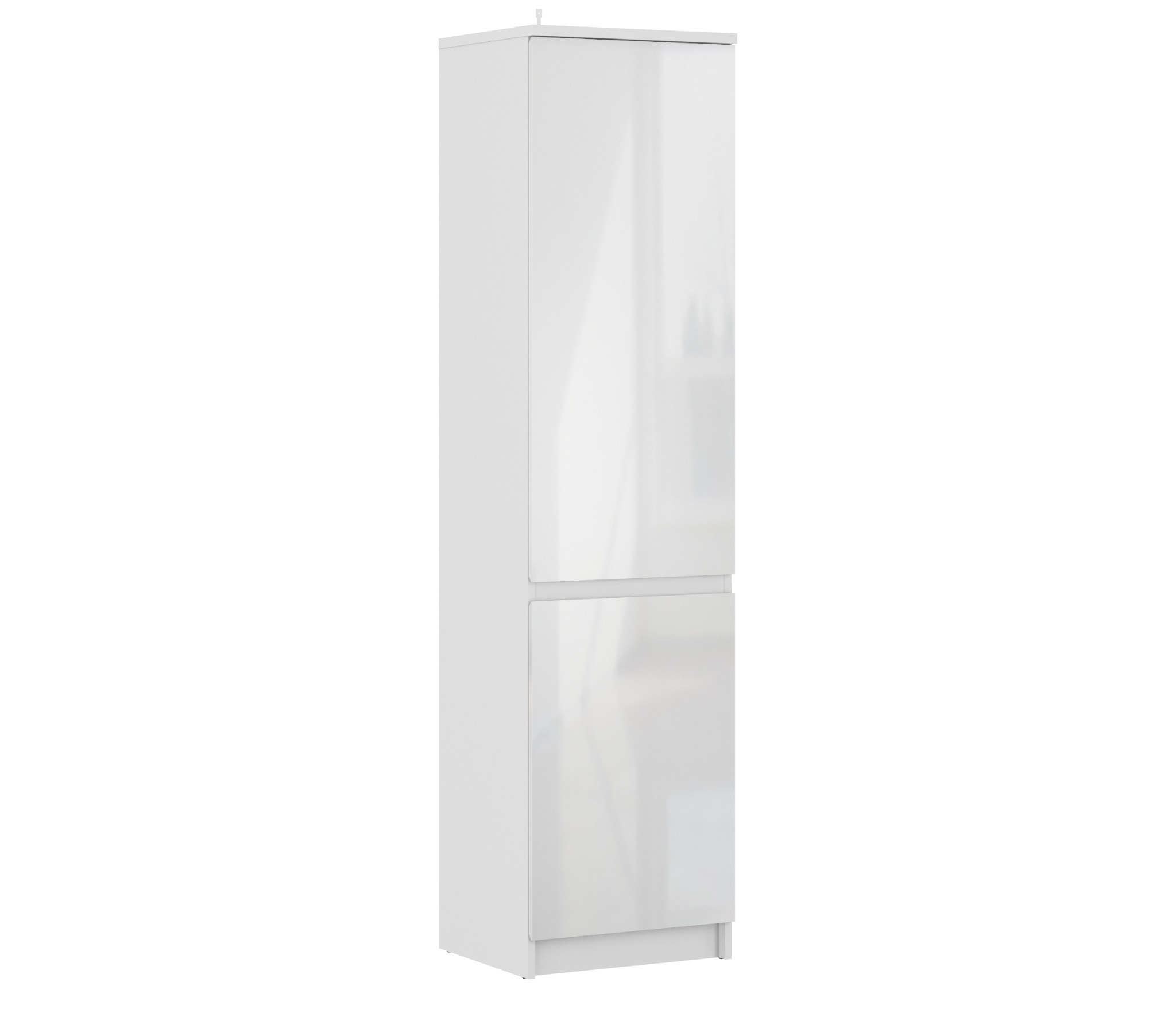 При скромных габаритах – ширина 50 см, высота 200 см, глубина 44, шкаф довольно вместителен. В нем два отделения, расположенных одно над другим, и у каждого своя дверца. В верхнем отделении три, а в нижнем две вместительные полки.¶Выполнен шкаф из прочного и современного материала КДСП и ЛДСП. Глянцевая отделка устойчива к влаге, что актуально для белого цвета. Шкаф имеет интегрированные в дверцы ручки. Он может использоваться как отдельный предмет мебели, так и в сочетании с другими элементами из коллекции Медея.