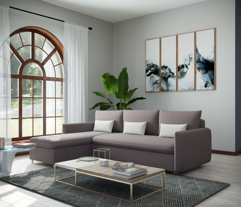 Угловой диван Рон это отличный выбор для ценителей стиля. Диван выполнен в красивом цвете в минималистичном дизайне. Диван оснащен всем необходимым для ежедневного использования. Диван выигрышно будет смотреться в гостиной или в любой другой комнате.