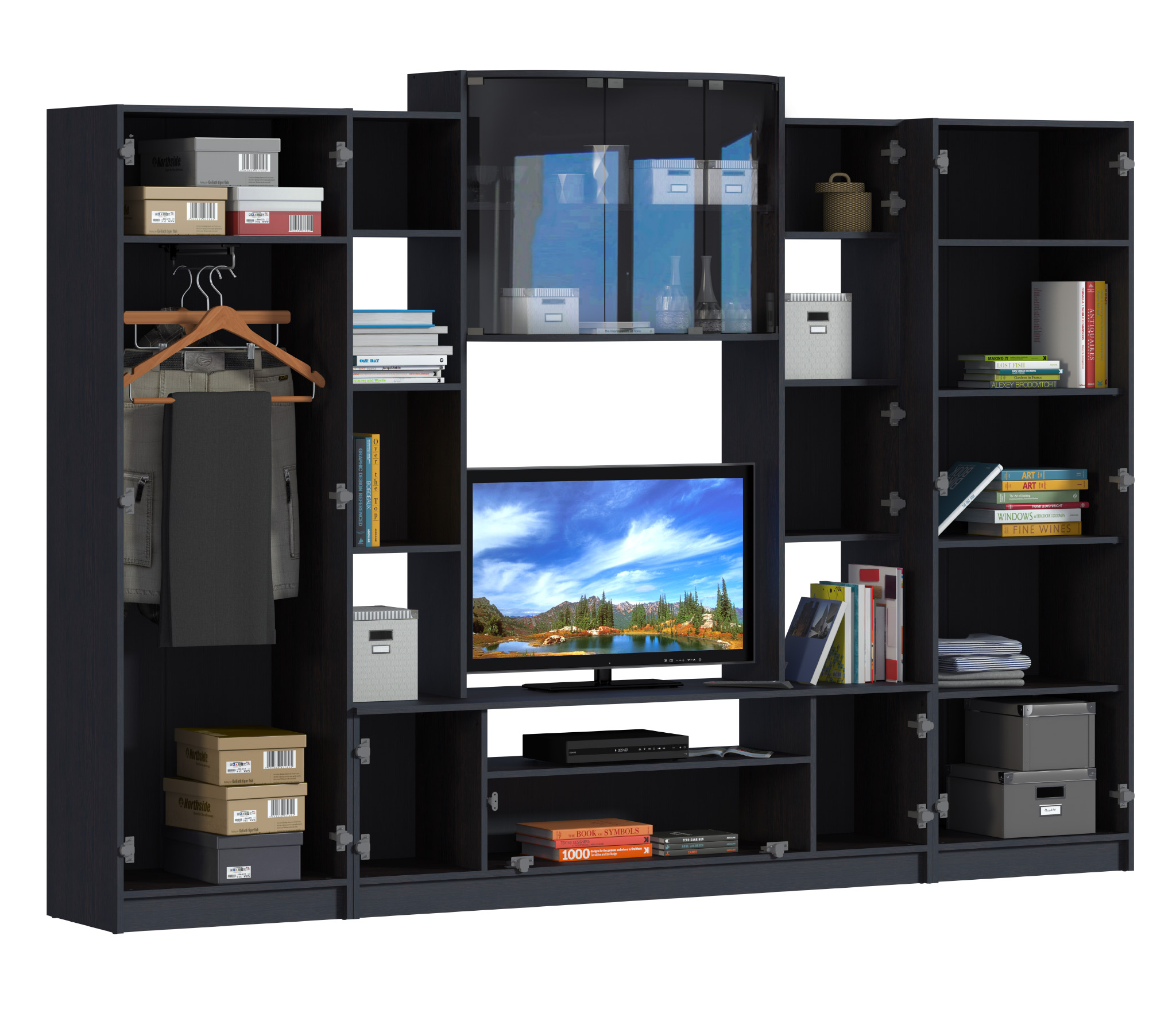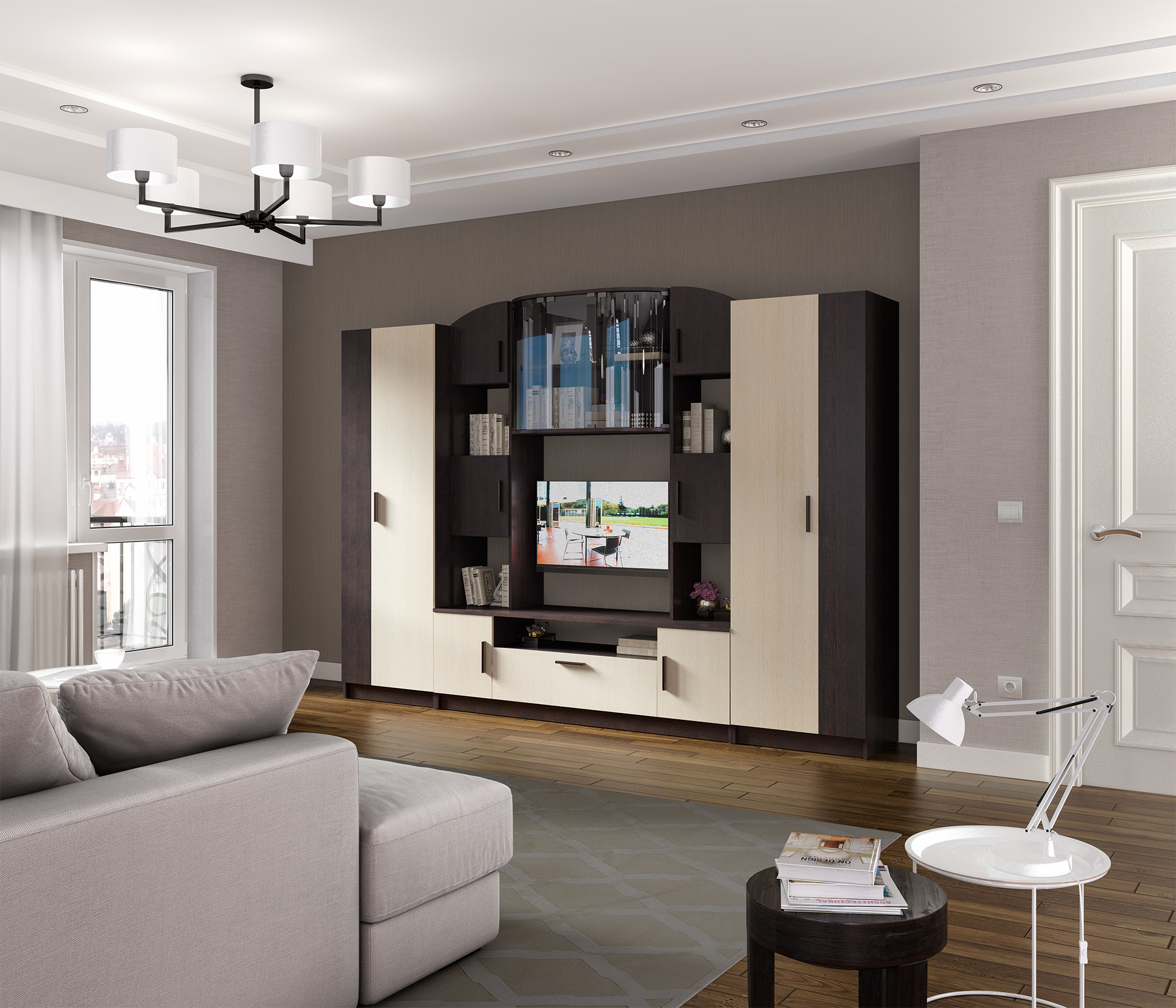 Стенка Макарена уверенно завоевала сердца наших покупателей. Стенка стильная и современная, выполнена в контрастном сочетании цветов корпуса и фасада. Большое количество различных отделений позволит Вам разместить все необходимые вещи и предметы декора. Элементы гарнитура гармонично объединяются и дополняют друг друга для создания более функциональной и комфортной комнаты. Идеальный вариант для обстановки небольшой гостиной. В комплект входит: витрина СБ-2615-01 с распашными дверцами, с открытыми и закрытыми полками, тумба ТВ СБ-2615-02 с распашными дверцами, шкаф 2х дверный СБ-2615-03 с антресолью и поперечной штангой, шкаф 2х дверный СБ-2615-04 с 4 мя полками.