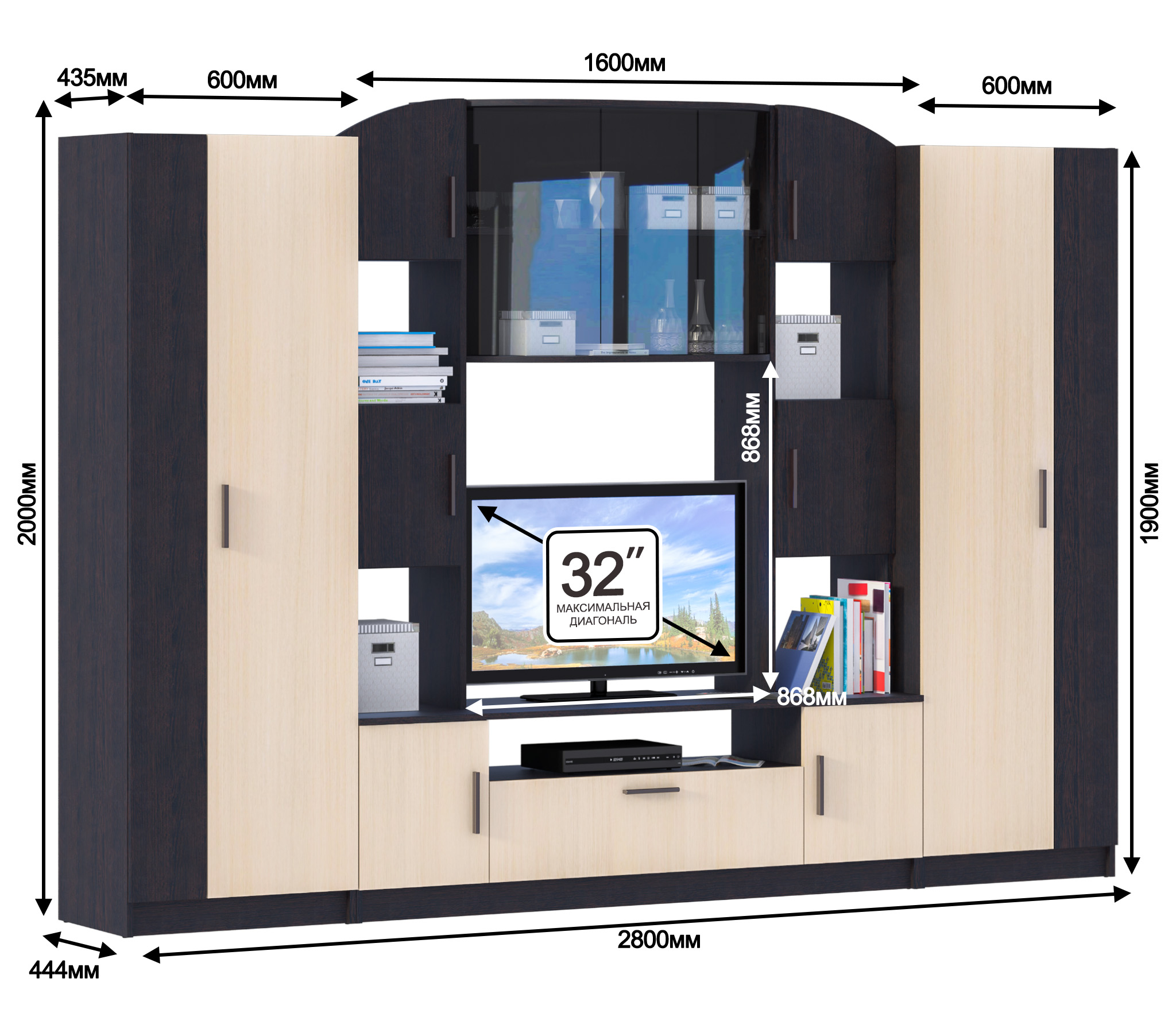 Размеры нишы под ТВ 868 мм * 854 мм