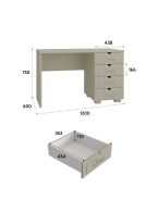 Материал корпуса/фасада: ЛДСП/МДФ. Цвет корпуса/фасада: белое дерево. Размеры модуля (ш/г/в) в мм: 1200х600х750. Особенности: столешница изготовлена из МДФ толщиной 25 мм. В ящиках используются телескопические направляющие полного выдвижения.