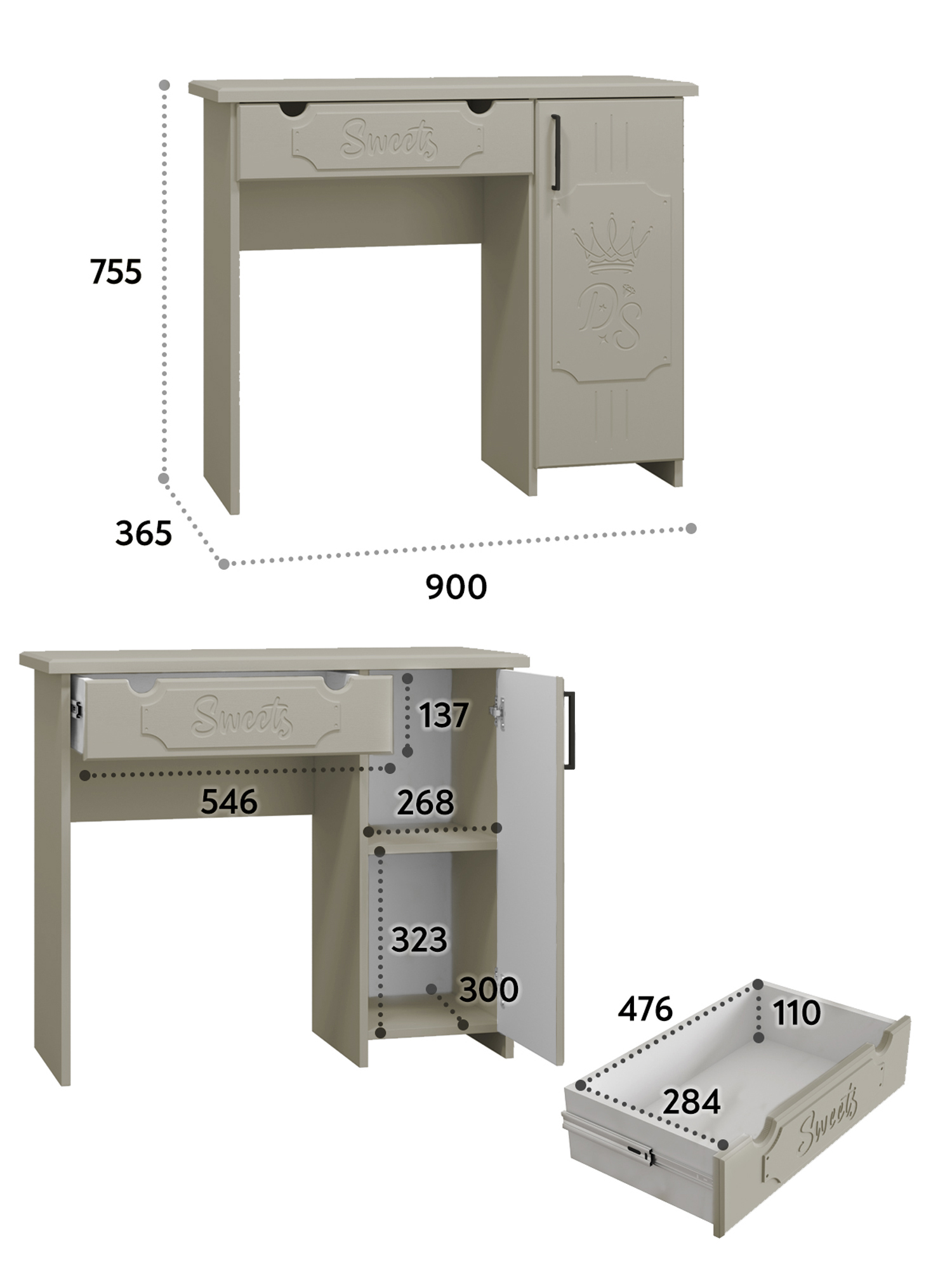 Отзывы о Столплит Туалетный столик ДримСтар ДС-2 Коричнево-серый