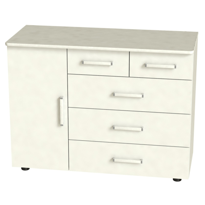 Гамаюн М-7 отличается большими размерами и многофункциональностью.3 больших+2 маленьких выдвижных ящика,позволят разместить множество вещей.Дверь,скрывающая полку,позволяет разместить более крупные вещи.Корпус и фасады из высококачественного ЛДСП..Производитель сохраняет за собой право менять фурнитуру.