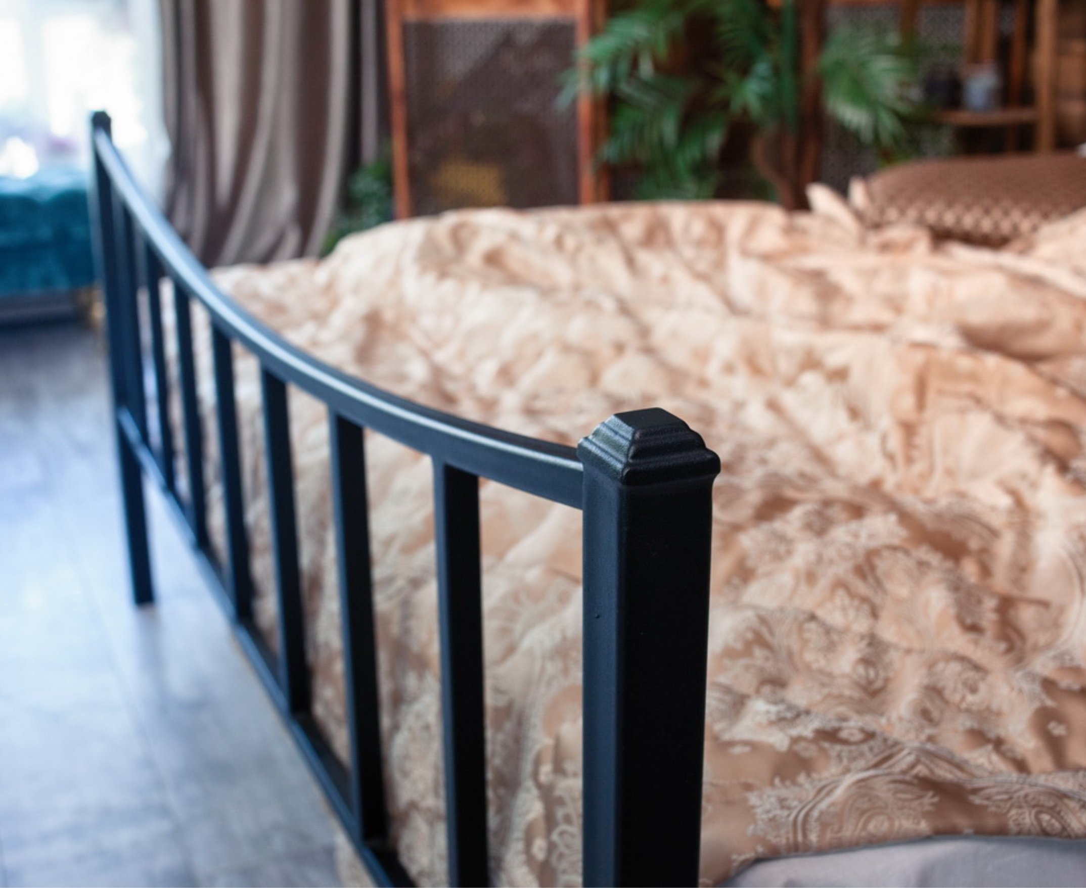 Кровать прекрасно дополнит как интерьер в соответствующей стилистике, так и станет украшением любой комнаты в современном оформлении.
