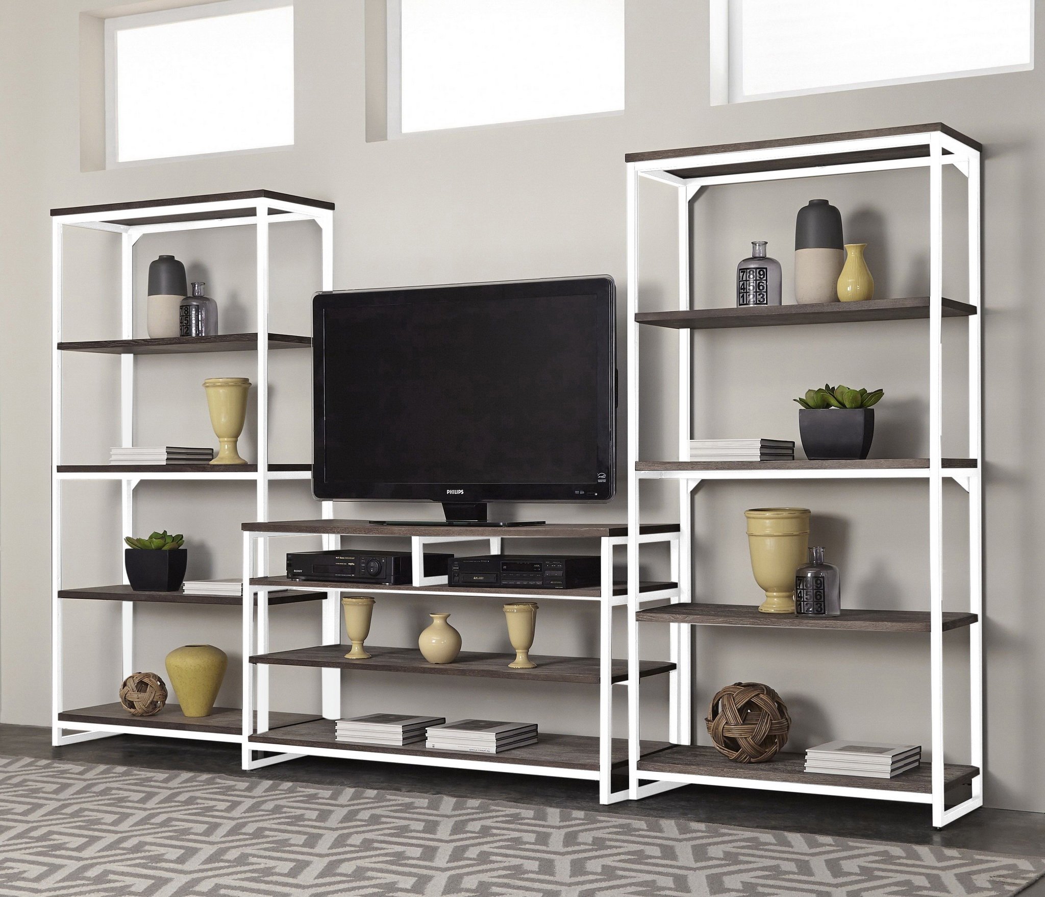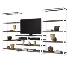 со стеллажом, глянцевые фасады, С полками, С ТВ тумбой