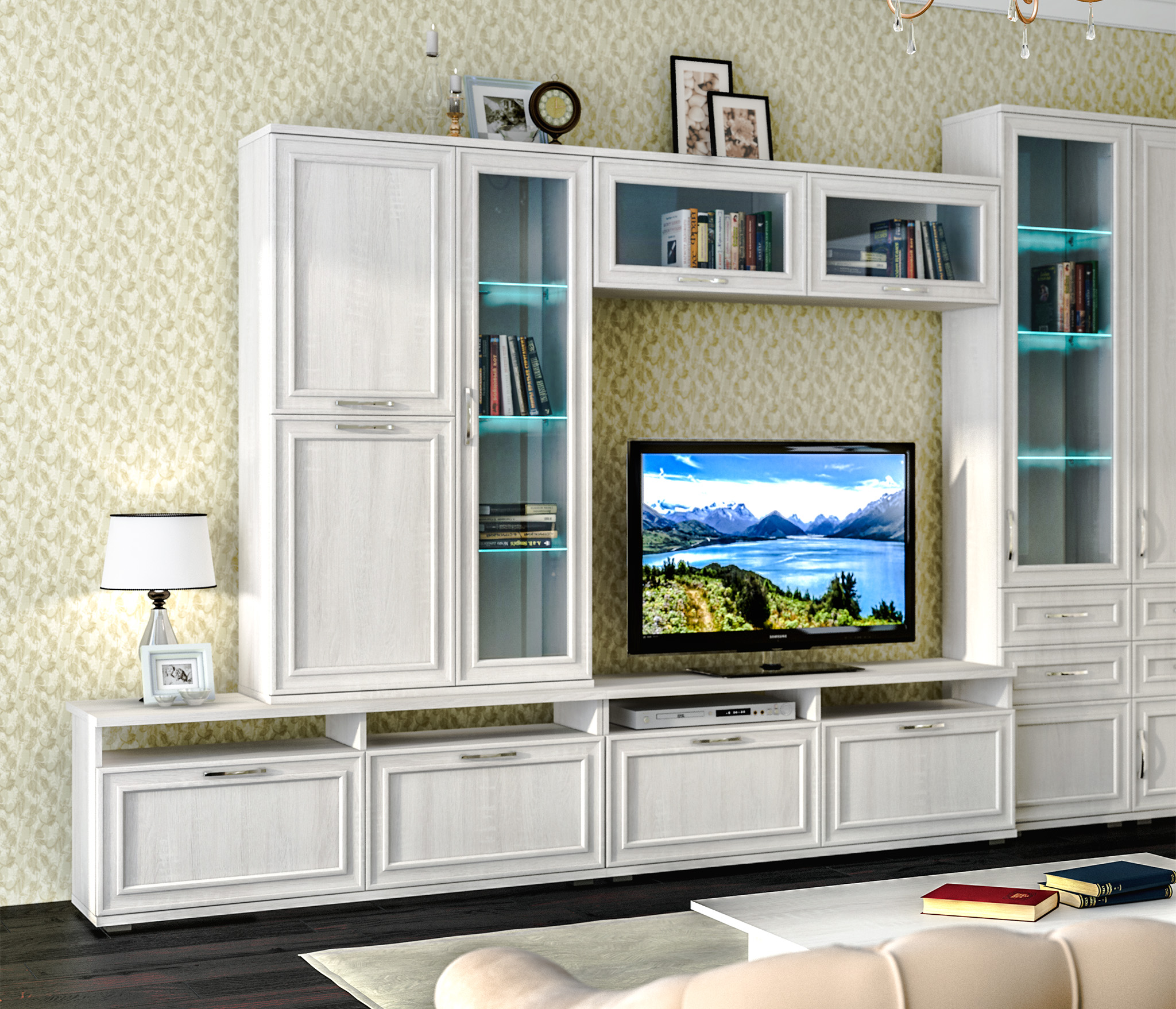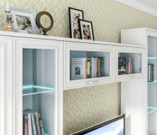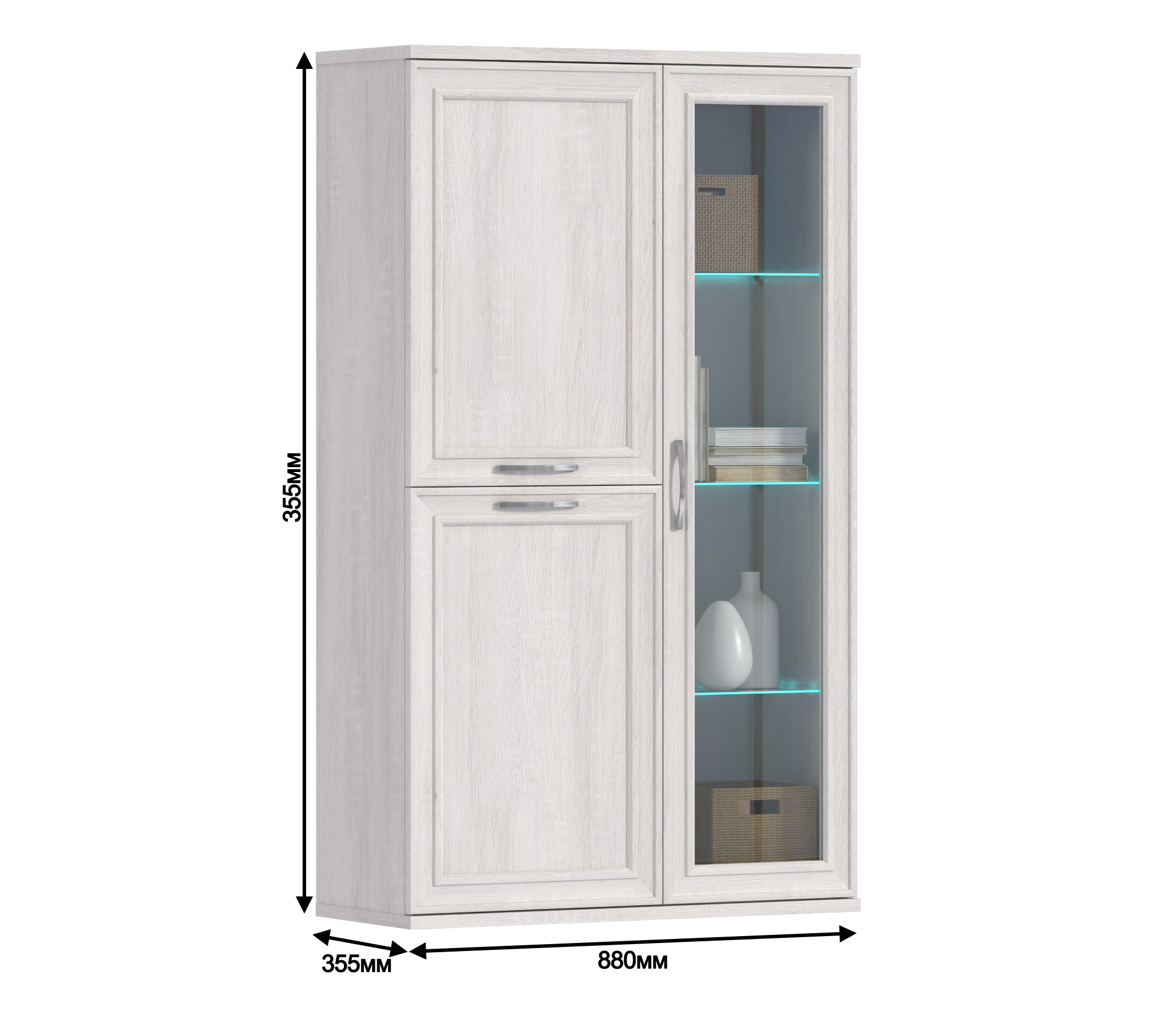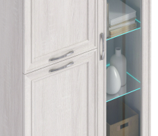 Габаритные размеры витрины – ширина 88 см, высота 150 см и глубина 35 см. В левой части витрины расположены отделения с распашными дверцами, которые оснащены полками. В правой части - отделение со стеклянной дверцей и тремя стеклянными полками. Произведена витрина из современных материалов - КДСП и МДФ.Классическое исполнение, светлый оттенок оформления «Дуб Сонома белый», подобранная фурнитура и качественные крепёжные механизмы говорят о достойном качестве витрины Флоренция СБ-2407.Шкаф может использоваться как отдельный предмет мебели, так и в сочетании с другими элементами из коллекции Флоренция.