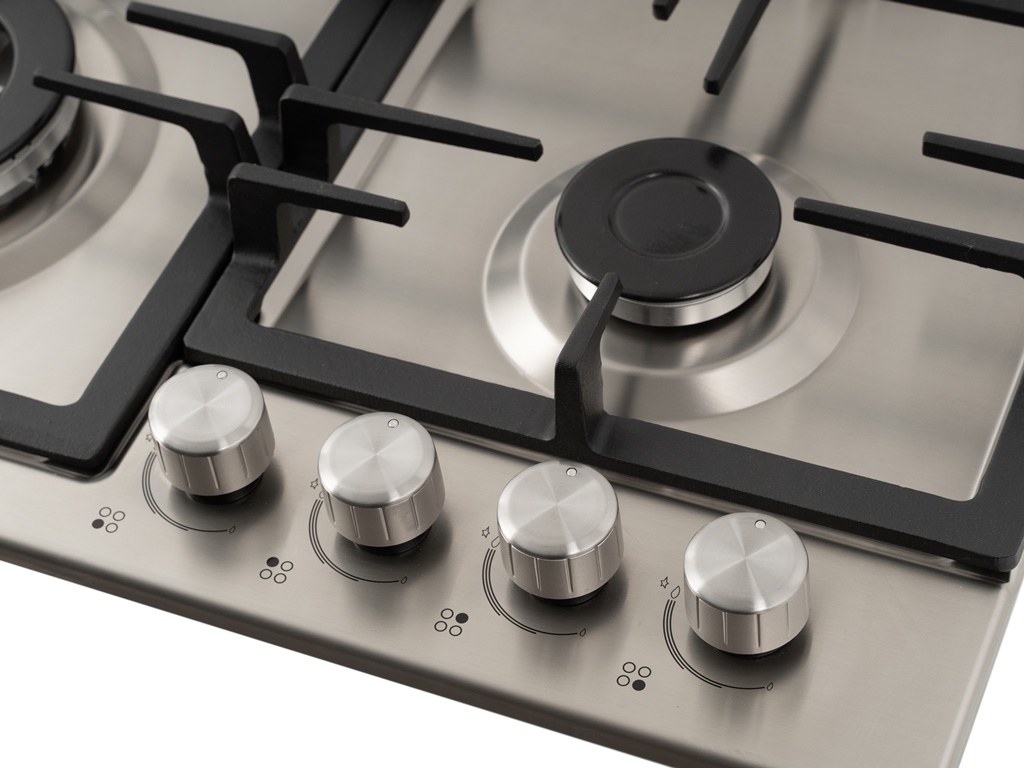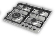 Газовая варочная поверхность металл, Ширина 60 см, 4 газовые конфорки, 1 экономичная конфорка (0,9 кВт), 2 стандартные конфорки (1,7 кВт), 1 ВОК конфорка(3,5 кВт), Автоподжиг, Чугунные решетки, Жиклёры для баллонного газа, Газ-контроль, Цвет: нержавеющая сталь.