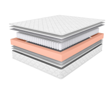 В основе матраса размещен блок независимых пружин, которые отлично адаптируются к контурам тела и обеспечивают оптимальную поддержку. Экопол(белый войлок, хлопок, полиэстер), входящий в состав матраса, придает ему дополнительную упругость и способствует равномерному распределению веса. По периметру матрас усилен коробом из плотной ортопедической пены, продлевающий срок службы матраса.