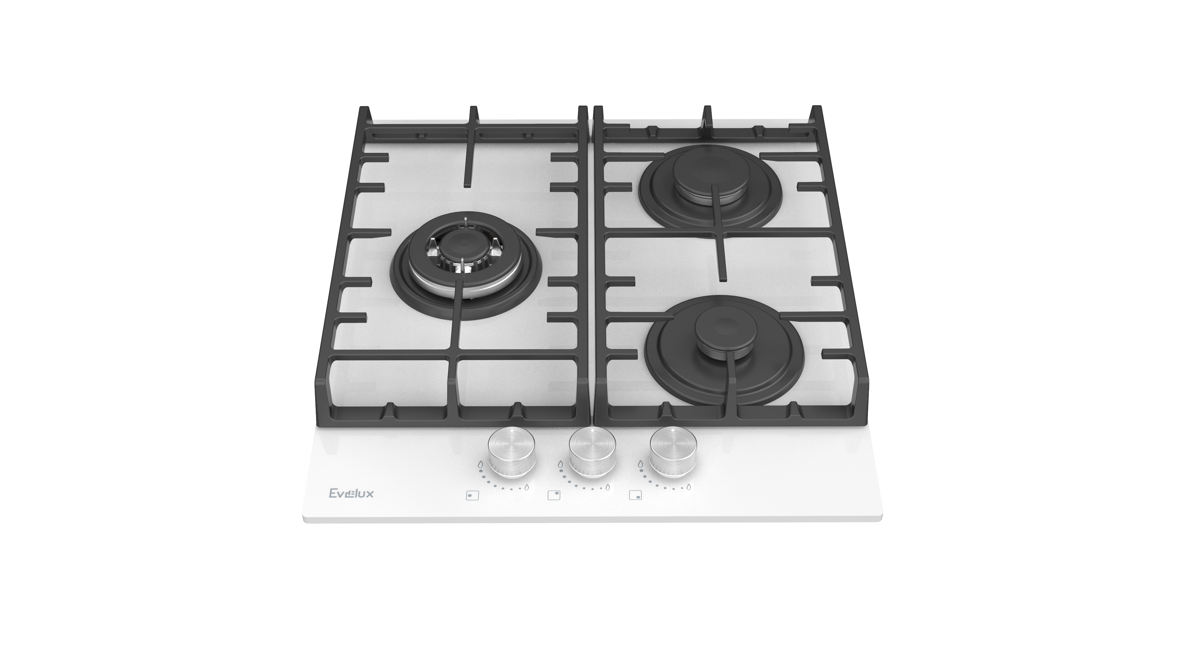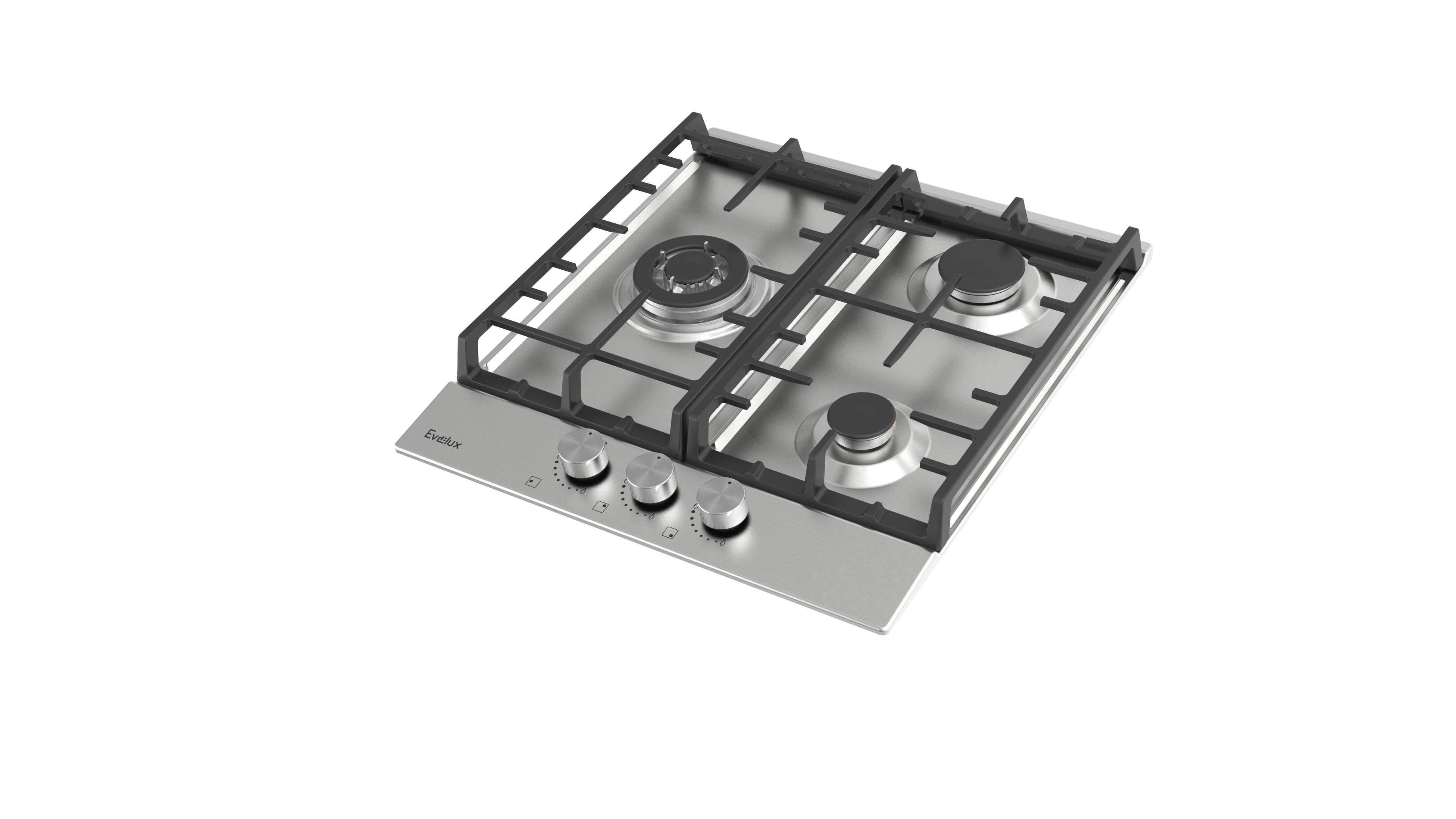 Поворотные регуляторы газовых варочных поверхностей Evelux выполнены из металла, что создает профессиональный стиль и препятствует их перегреву.