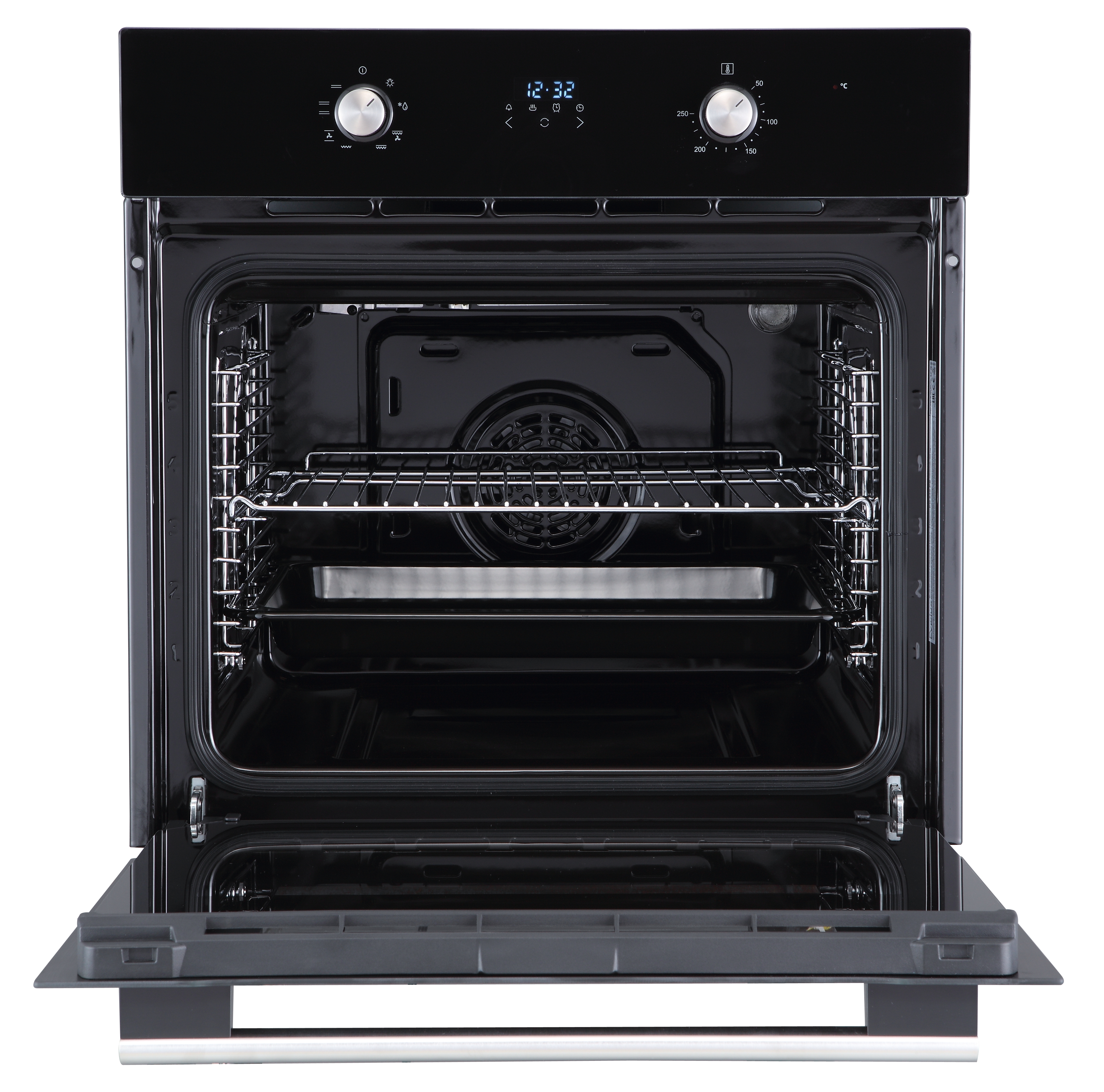 Электрический духовой шкаф встраиваемый полноразмерный, 60 см, 8 режимов, объем духовки 70л, утапливаемые переключатели, дисплей Snow White, хромированные боковые решетки, панель управления - черное стекло, универсальный противень, решетка-гриль, двойное стекло дверцы, легко-съемное большое внутреннее стекло Full Glass, защитное отключение, охлаждающий вентилятор, электронный таймер 10 часов, 595х575х595 мм.