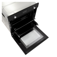 Электрический духовой шкаф встраиваемый полноразмерный, 60 см, 9 режимов, объем духовки 70л, утапливаемые переключатели, большой дисплей Snow White, хромированные боковые решетки, телескопические направляющие 1 уровнь, панель управления - черное стекло, универсальный противень, решетка-гриль, тройное стекло дверцы, легко-съемное большое внутреннее стекло Full Glass, защитное отключение, охлаждающий вентилятор, электронный таймер 9 часов, 595х575х595 мм.