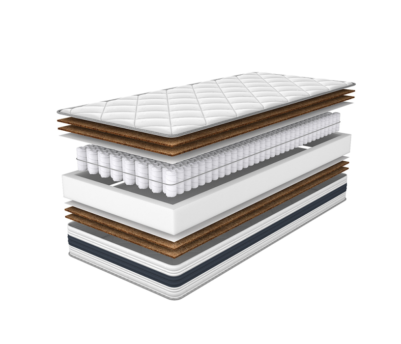 Кокосовая койра в составе комфортного слоя – экологически чистый, хорошо вентилируемый материал. За счет упругих, плотно сплетенных волокон в составе он обеспечивает правильную поддержку позвоночника и гигиену спального места.