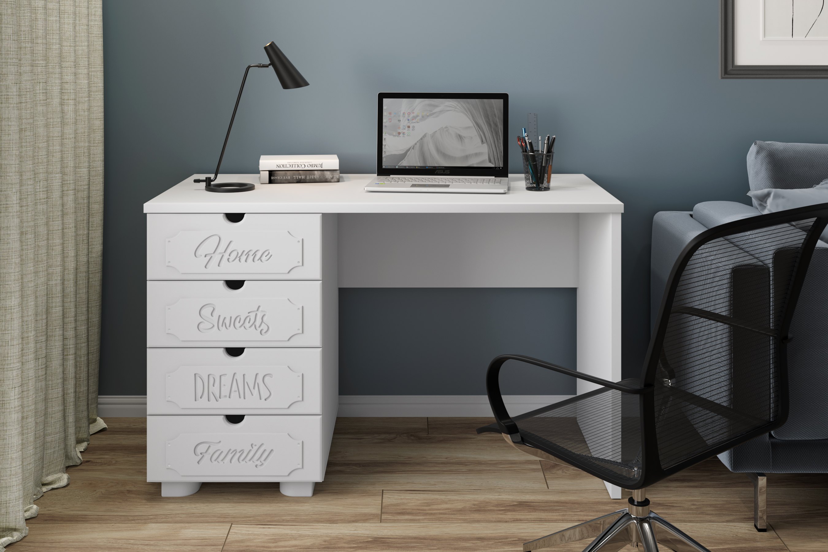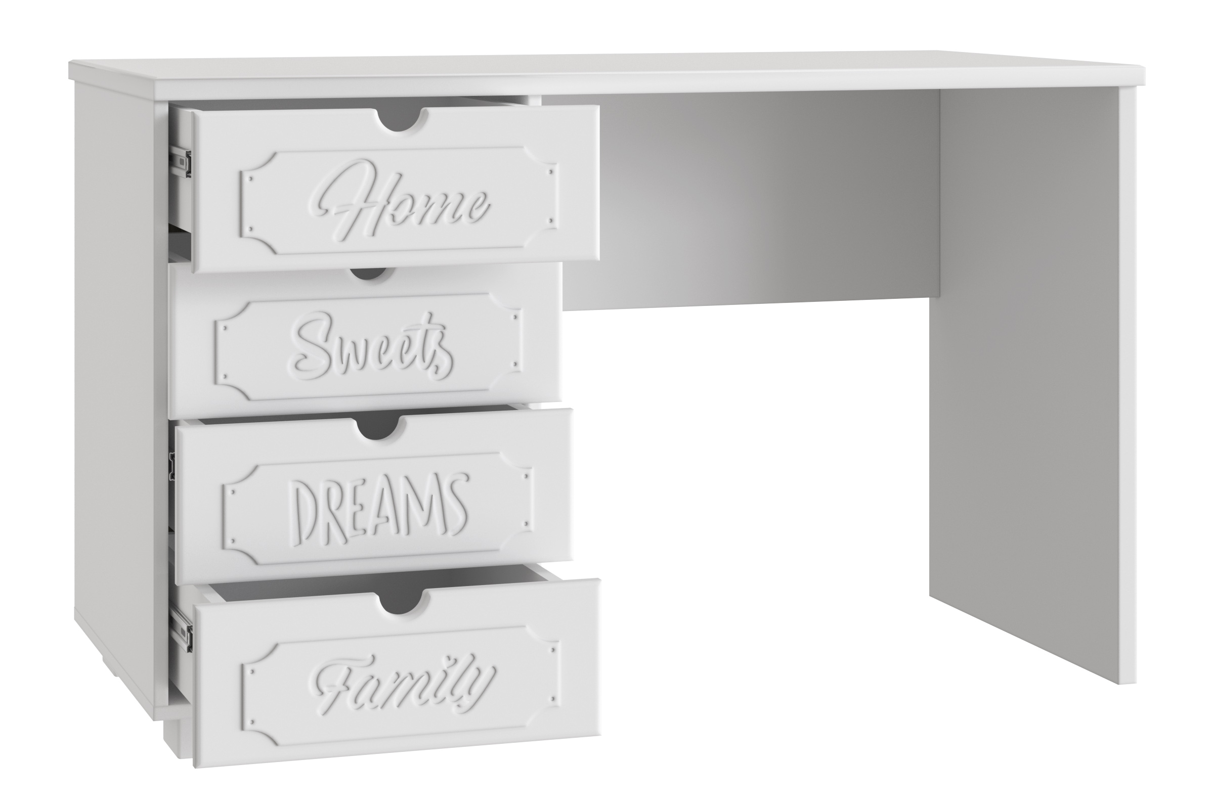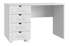 Система мебели "Дримстар" включает в себя отдельные самостоятельные модули, сочетающие в себе функциональность и уникальность дизайна. С базовым набором модулей легко оформить интерьер любого помещения. Все модули можно комбинировать между собой. Фасады украшены надписями, которые придают моделям оригинальный вид. Коллекция "Дримстар" поможет вам в оформлении стильного и современного интерьера. Столешница изготовлена из МДФ толщиной 25 мм. В ящиках используются телескопические направляющие полного выдвижения. Расположение ящиков только с правой стороны.