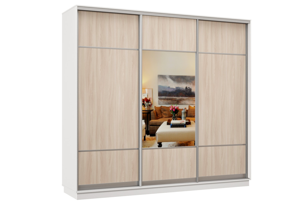 Шкаф-купе Премьер Лайт 57 (08;05;08) трехдверный (Ясень шимо светлый/Белый) Код I0000314942