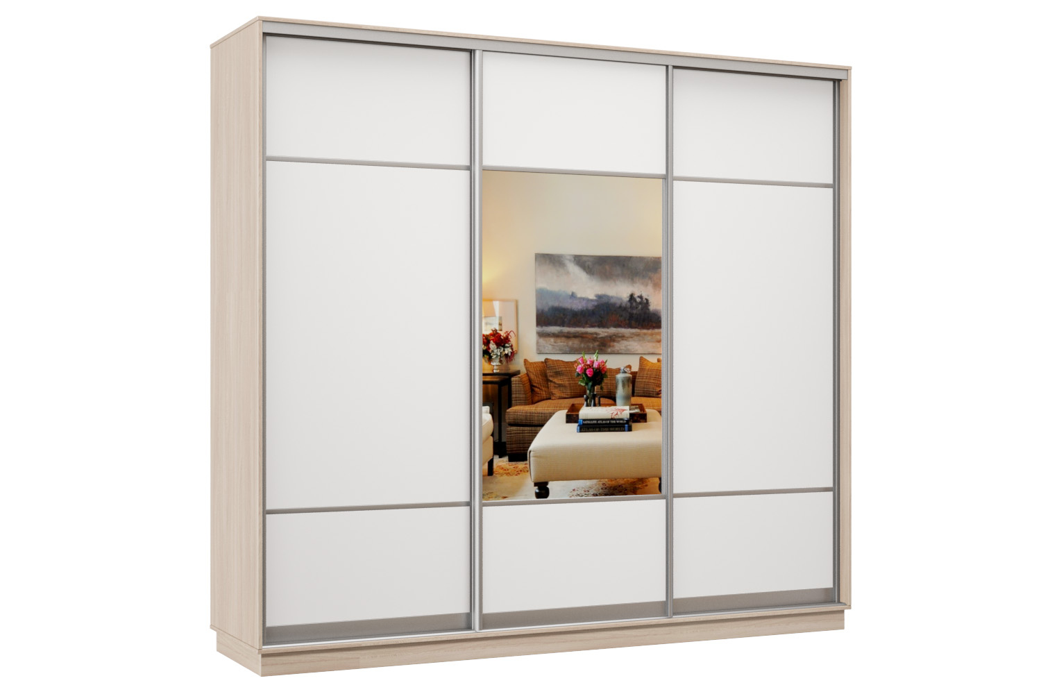 Шкаф-купе Премьер Лайт 57 (08;05;08) трехдверный (Ясень шимо светлый / Белый глянец) Код I0000314946