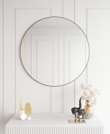 Круглое зеркало в доме или квартиры с древности считается символом постоянства и благополучия, поэтому пользуется особой популярностью. Представленную модель зеркала в очень тонкой раме, лишённой излишеств, с уверенностью можно считать универсальной. Это настенное зеркало красиво смотрится на кирпичной кладке интерьера в стиле лофт. Оно подходит для модных сегодня минималистичых стилей: хайтек, скандинавского, кронтемпорари. Способно поддерживать и классическую стилистику. Зеркальное полотно достаточно толстое – 4 мм, производства известного бельгийского бренда AGC, «зеркальную» продукцию которого высоко ценят в разных странах по всему миру.