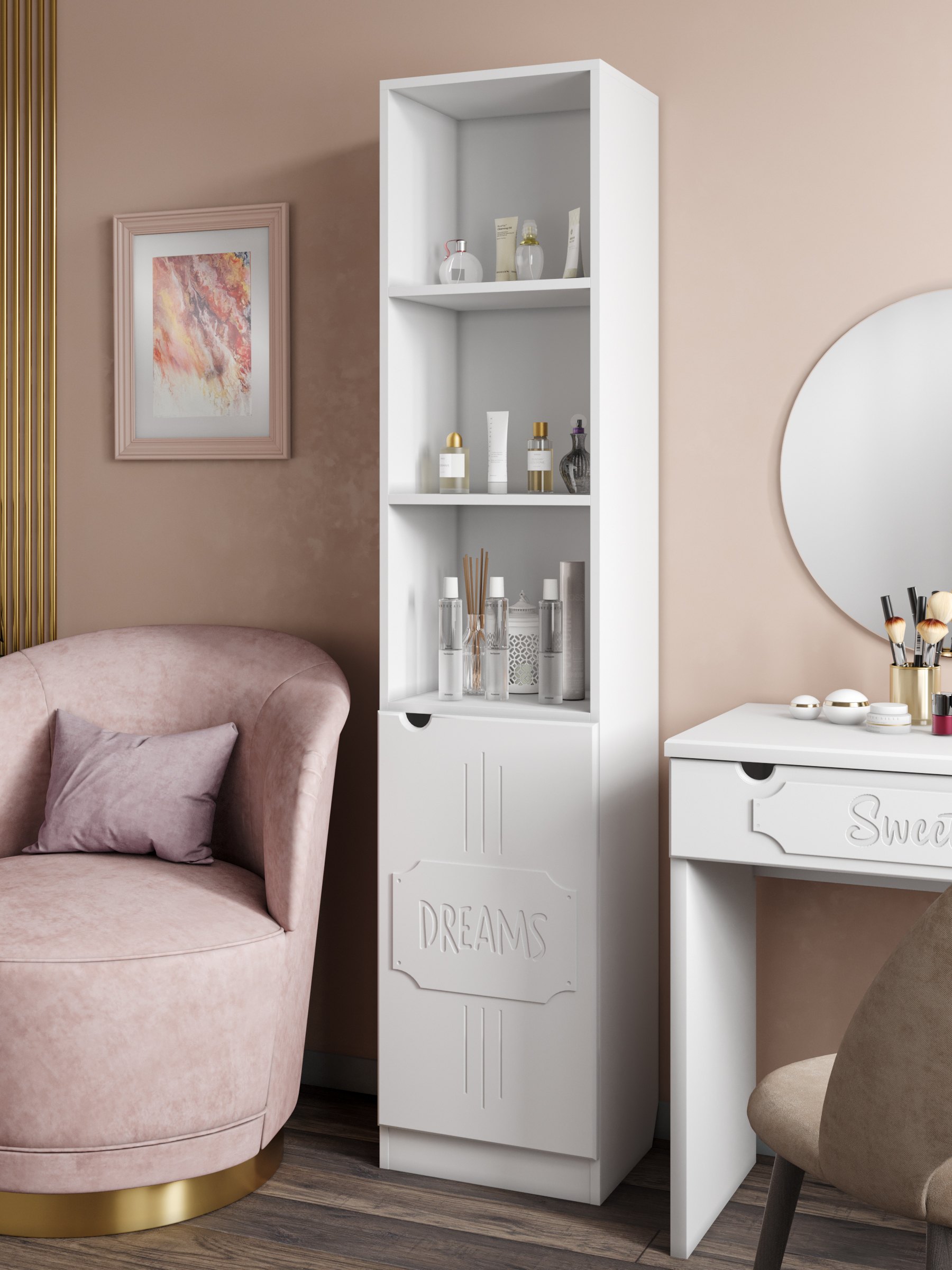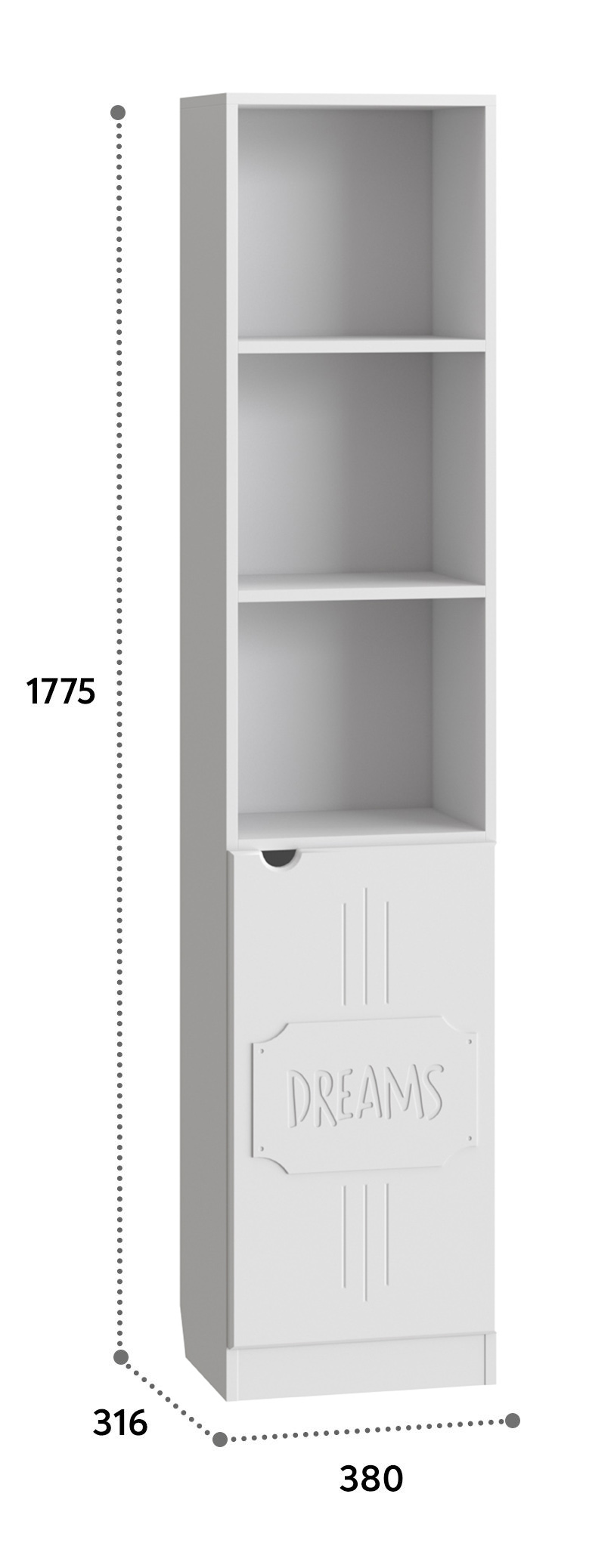 Пенал ДримСтар ДС-61 станет прекрасным дополнением вашей гостиной, спальни или детской комнаты. Пенал имеет два отделения, верхнее отделение с двумя открытыми полками, нижнее отделение с дверью и полкой. Межполочное расстояние 321 мм. Фурнитура: петли с доводчиками.