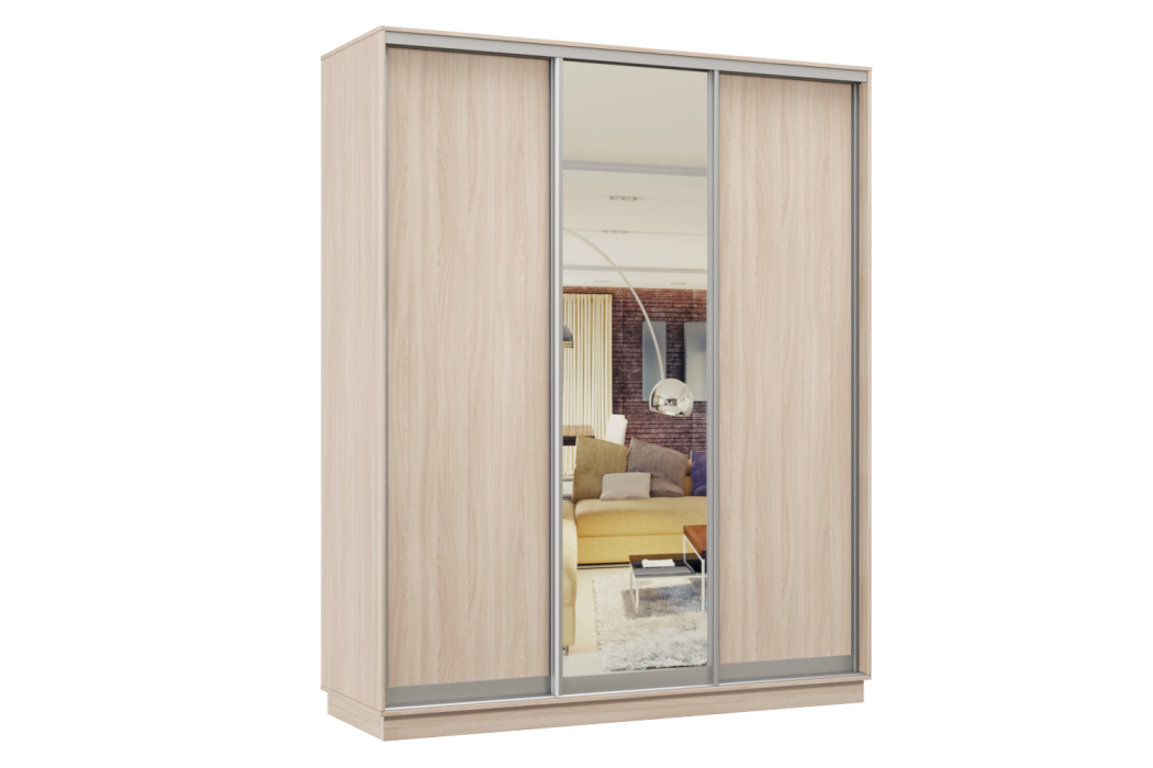 Шкаф-купе Премьер Лайт 29 (02;01;02) трехдверный (Ясень шимо светлый) Код I0000329969
