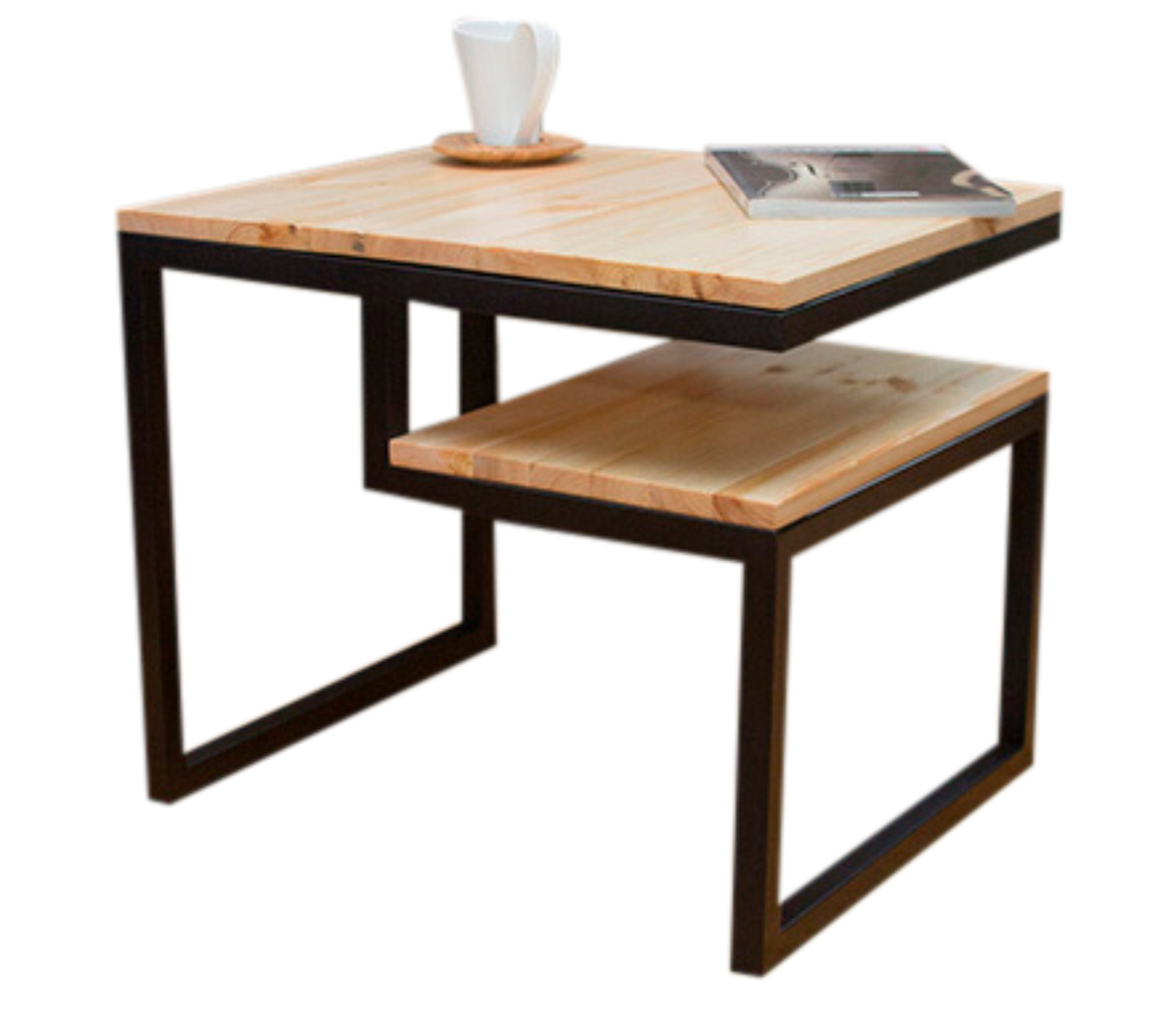Каркас: профильная труба 20х20 мм.Прочное полимерно-порошковое покрытие черного, белого и серого цвета Дерево: массив сосны 20 мм, покрытое специальным маслом для мебели, цвета на выбор: бесцветный, белый, серый, махагон, орех, морёный дуб, черный, клён, черный графит, голубой графит, темное золото графит, золото графит.