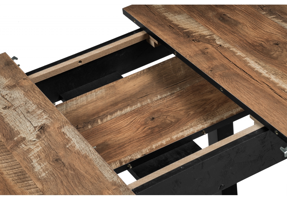 Расстояние между ножками: 70 х 45 см. Материал каркаса - Массив березы; Материал ножек - Массив березы; Материал столешницы - ЛДСП / пластик; Цвет каркаса - Черный; Цвет ножек - Черный; Цвет столешницы - Дуб юкон; Цвет подстолья - Черный; Ширина - 69; Высота - 74; Длина стола в разложенном виде - 139; Длина - 110.