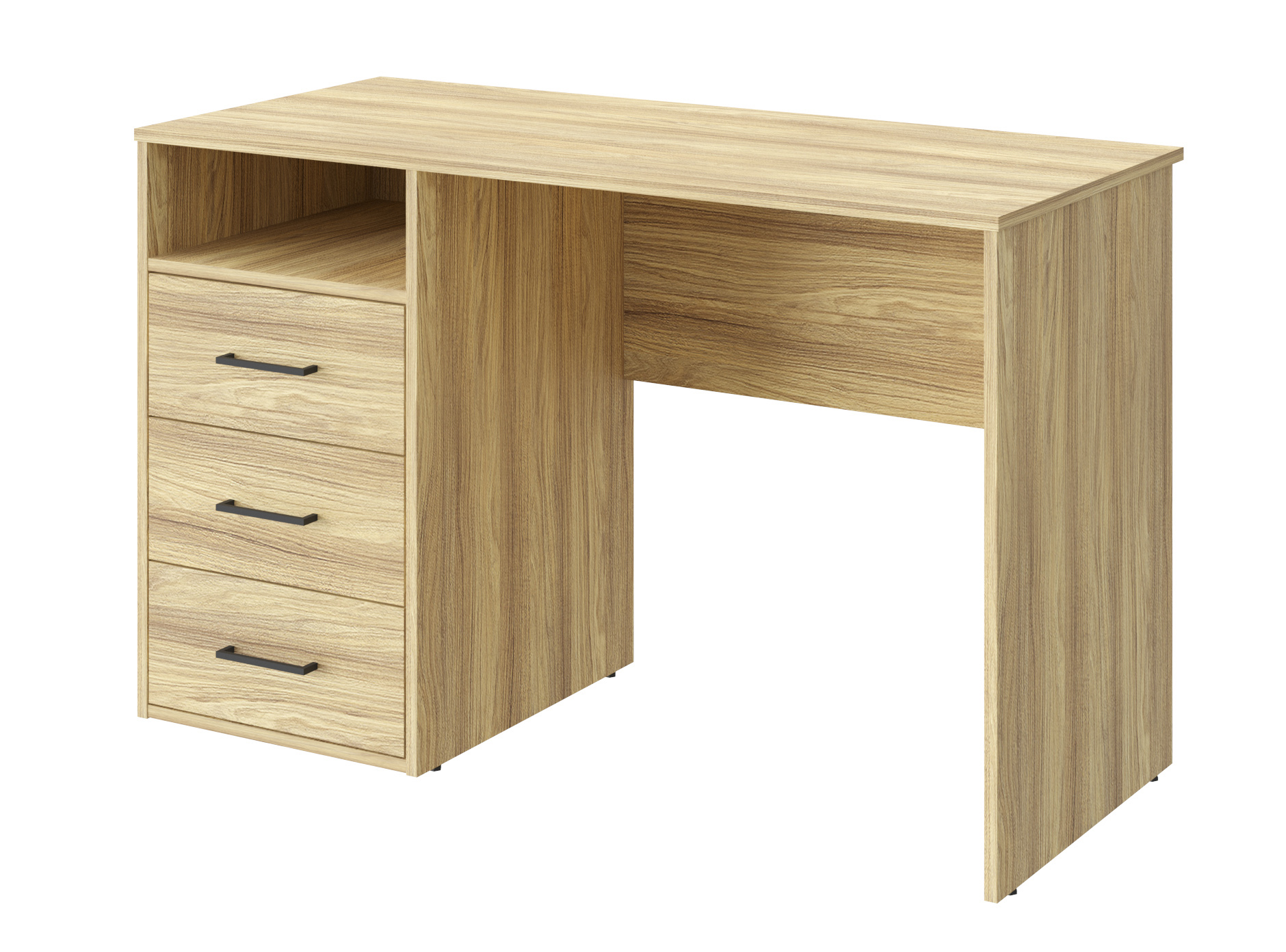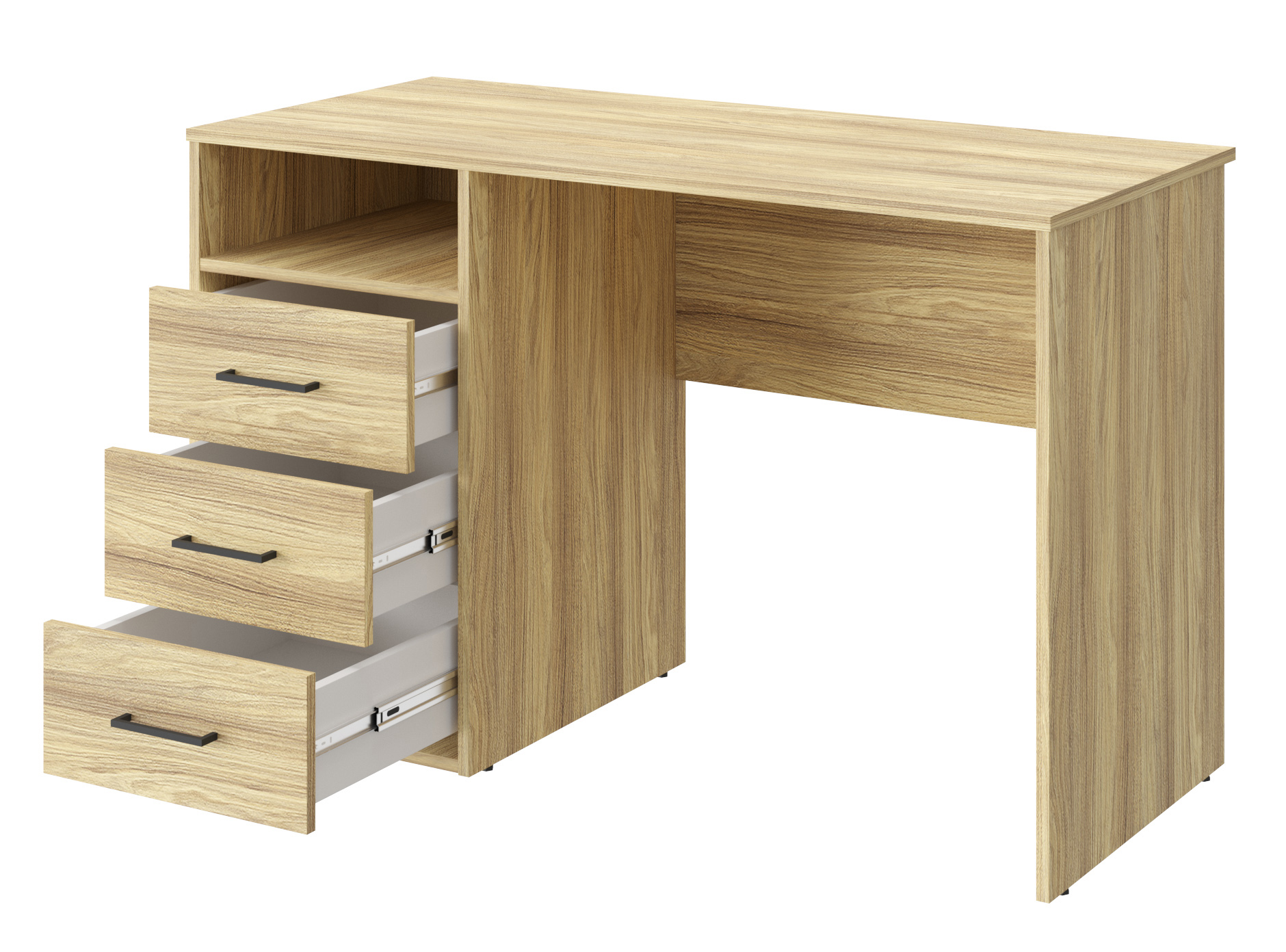 Письменный стол Оскар ОС-21 идеально подойдет для создания рабочего места в небольшом помещении. Благодаря своей универсальности стол с ящиками и нишей может использоваться как компьютерный, офисный, письменный или стол для ноутбука. С его помощью вы сможете организовать порядок на своем рабочем месте. Стол гармонично впишется в любой стиль интерьера. Современный и простой дизайн делает его идеальным для использования дома и в офисе. Свес крышки в 30 мм обеспечит прилегание к стене с любым плинтусом. Фурнитура: телескопические направляющие полного выдвижения без доводчиков, ручки пластик. Регулируемые опоры позволяют компенсировать возможные неровности пола.
