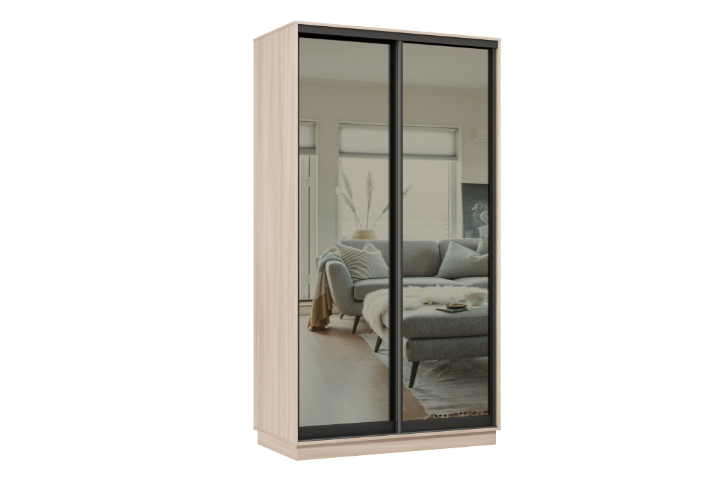 Шкаф-купе Премьер 11 (01ЗГ;01ЗГ) фасады зеркало графит/двухдверный/Профиль чёрный муар (Ясень шимо светлый)