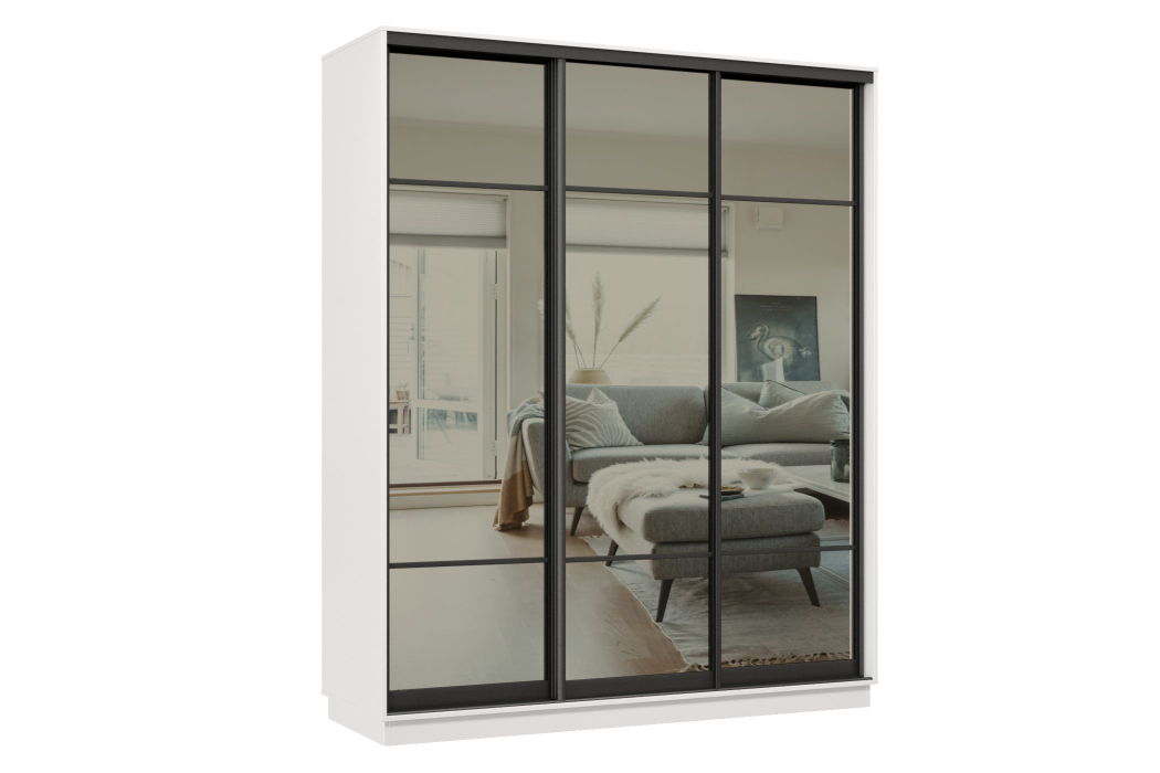 Отзывы о Столплит Шкаф-купе Премьер 24 (11ЗГ;11ЗГ;11ЗГ) фасады зеркало графит/трёхдверный/Профиль чёрный муар Белый