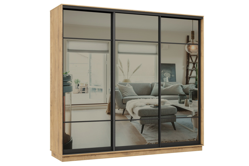 Отзывы о Столплит Шкаф-купе Премьер 34 (11ЗГ;11ЗГ;11ЗГ) фасады зеркало графит/трёхдверный/Профиль чёрный муар Бунратти