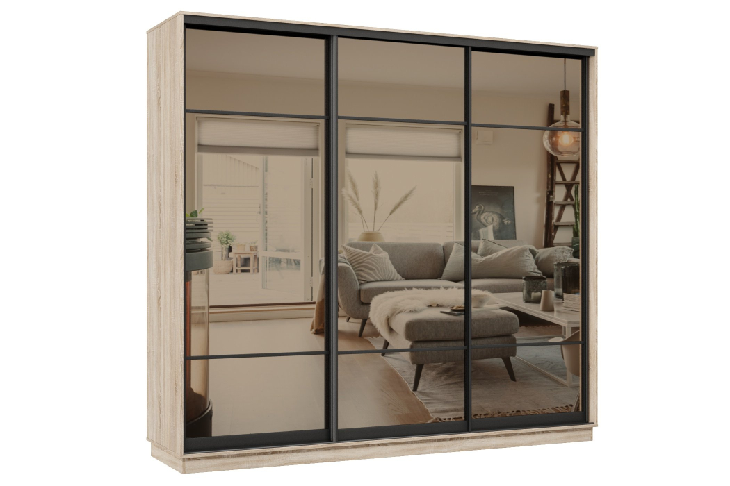 Отзывы о Столплит Шкаф-купе Премьер 57 (11ЗБ;11ЗБ;11ЗБ) фасады зеркало бронза/трёхдверный/Профиль чёрный муар Дуб сонома