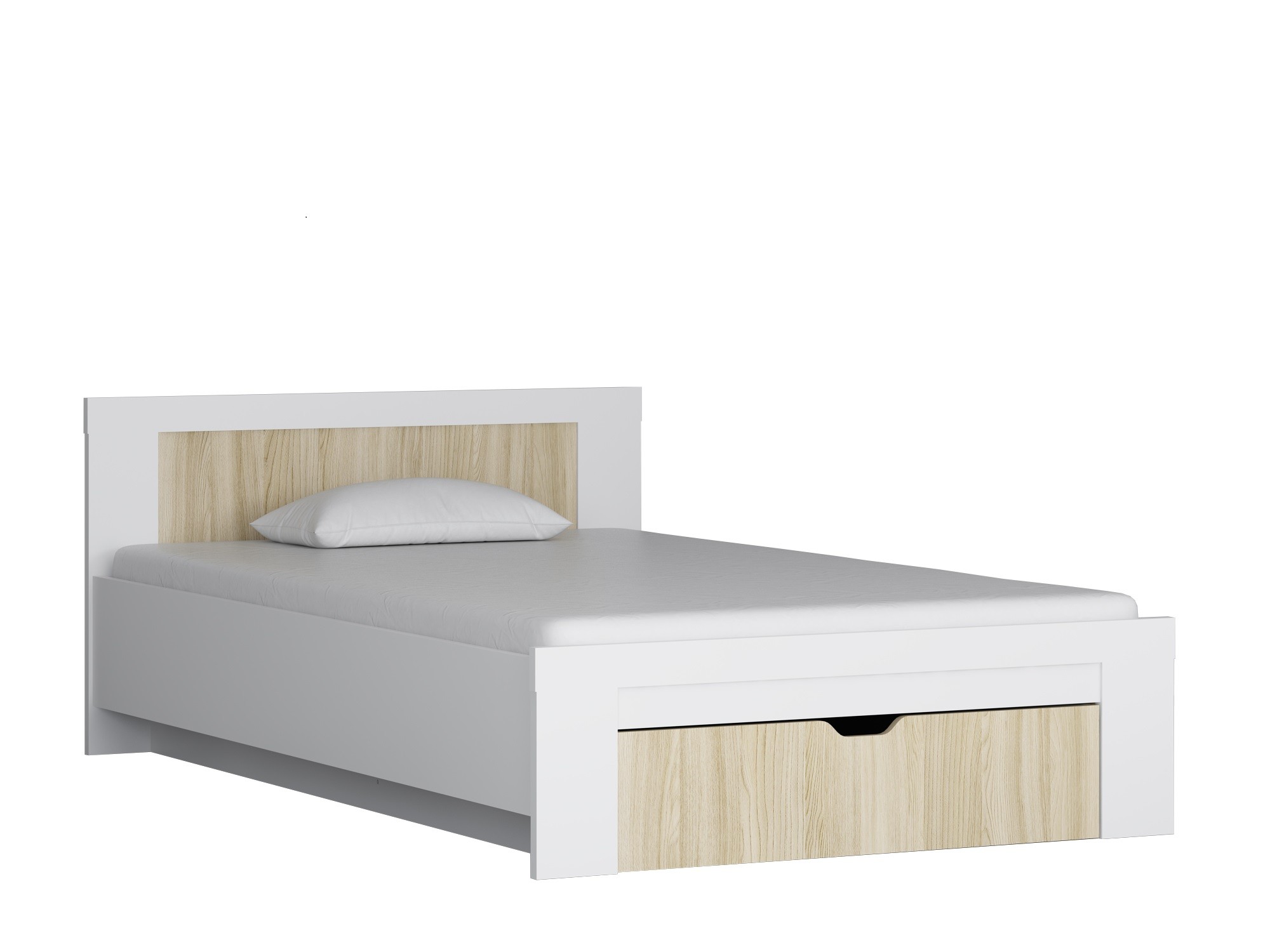 Кровать полутороспальная с ящиком ДЕЛЬТА Next 19.03 (Ясень шимо светлый/Белый)