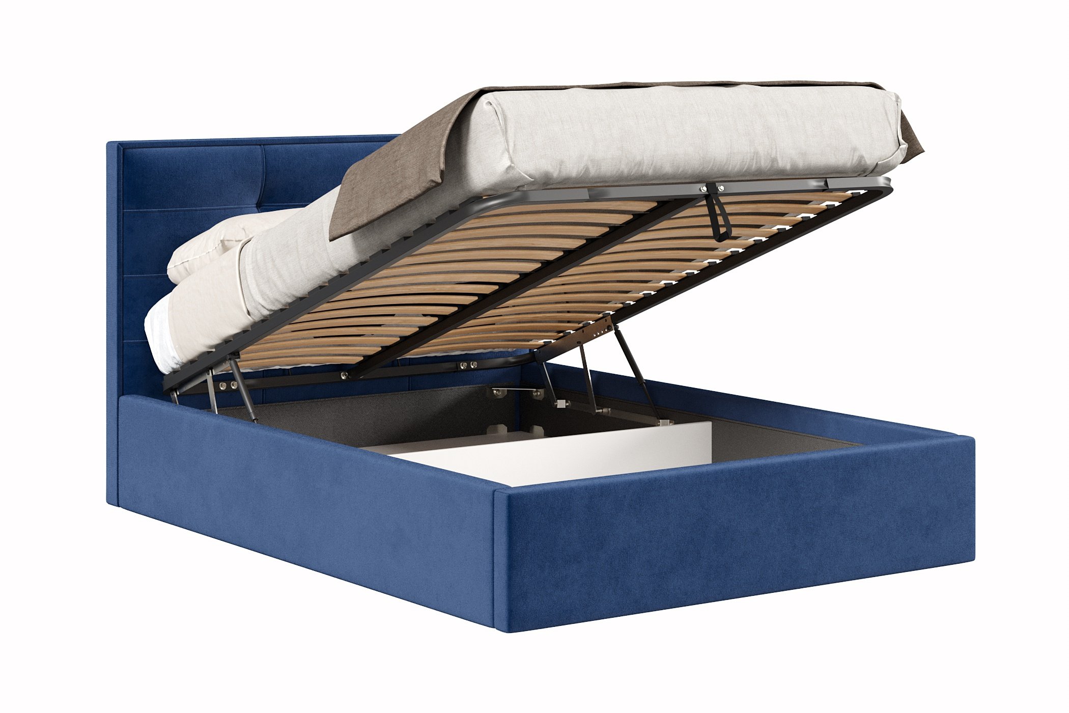Кровать имеет нишу для хранения разных вещей, это очень удобно, если пространство в комнате не дает возможность поставить дополнительные шкафчики, либо полки.
